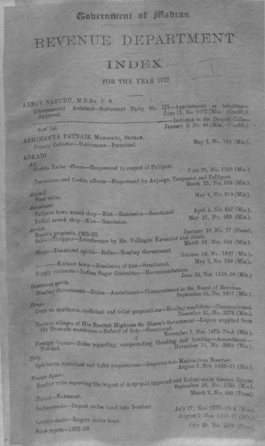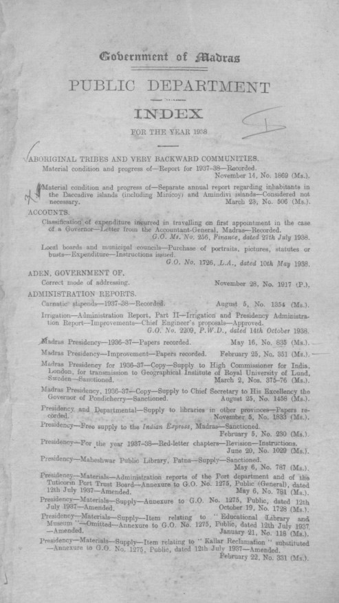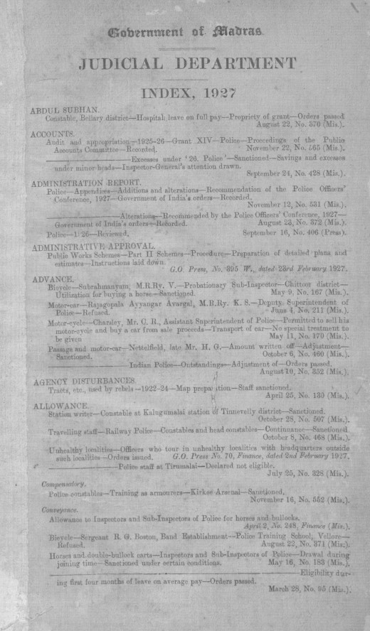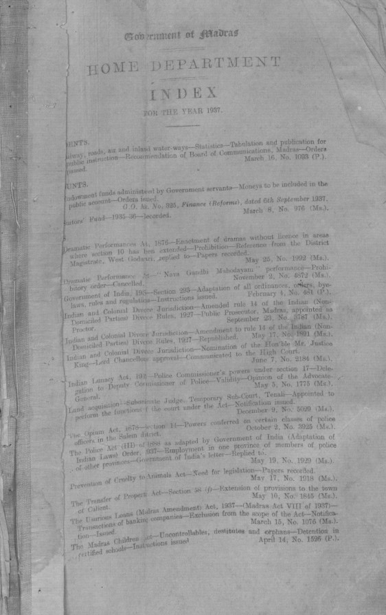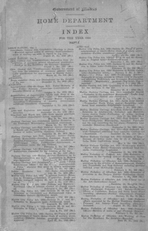 Index to the proceedings of the Government of Madras in the Home department, for the year 1948