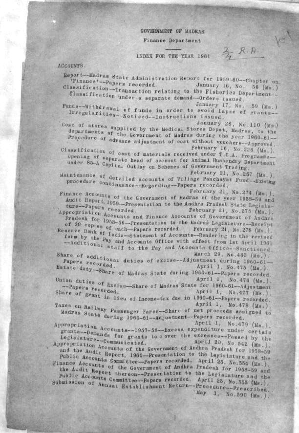 Index to the proceedings of the Madras Government in the Finance department, for the year 1944