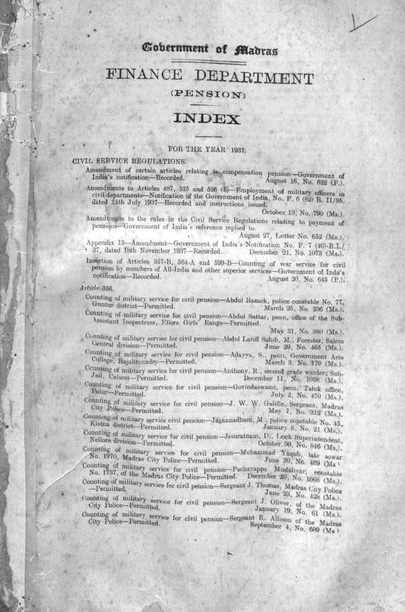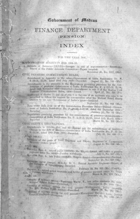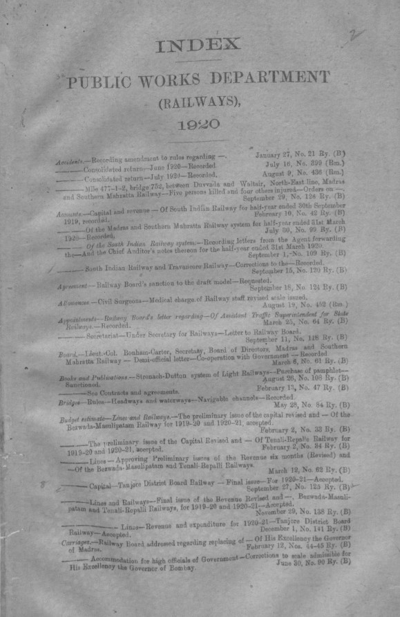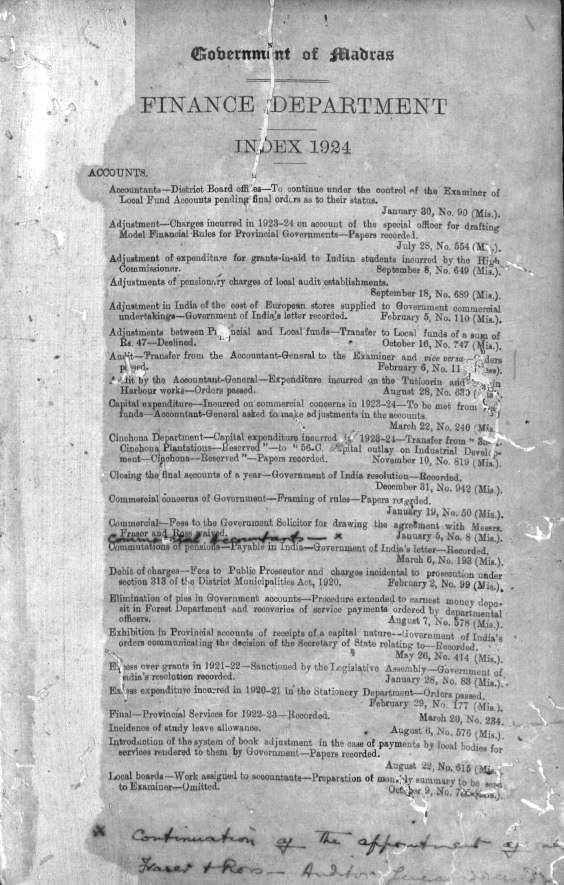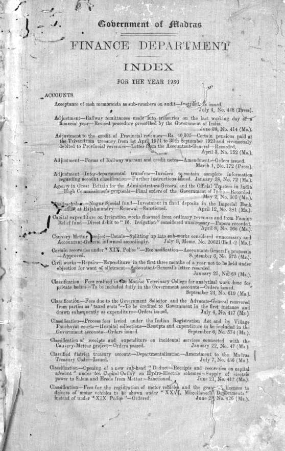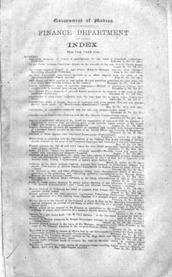 Index to the proceedings of the Madras G ...