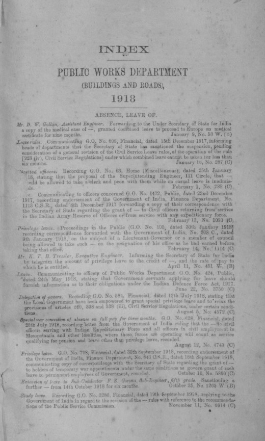 Index to the proceedings of the Madras Government in the Public Works department (Irrigation), for the year 1918