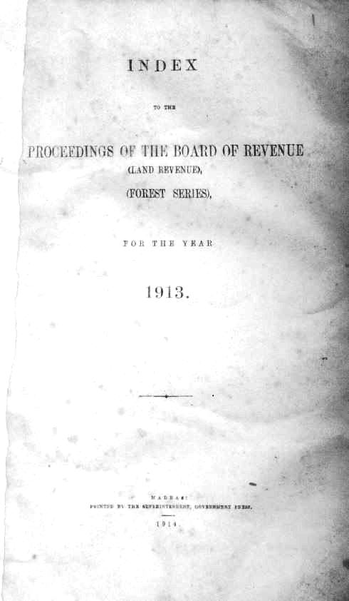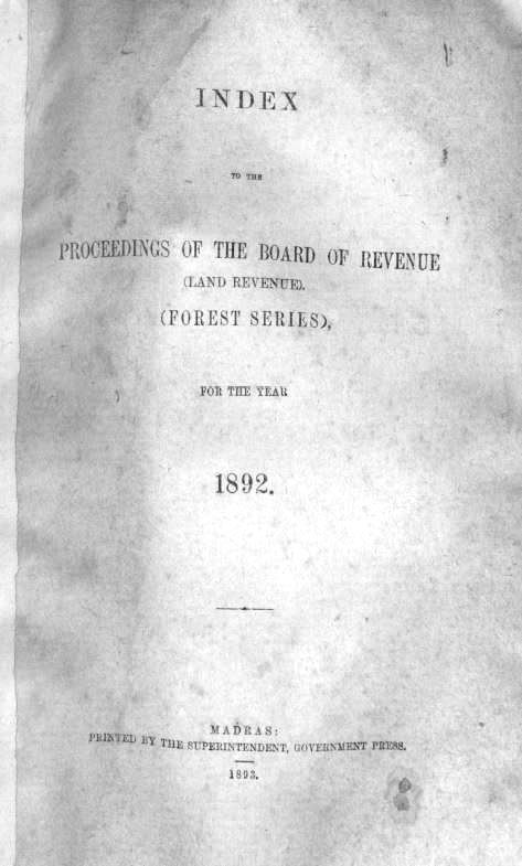 Index to the proceedings of the Board of Revenue (Land revenue), forest series for the year 1891
