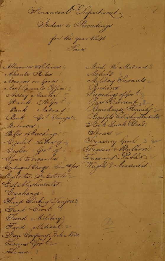 Index to the proceedings of the Financial department, for the year 1847 - Vol. 8