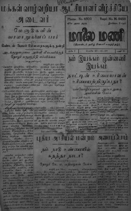 மாலைமணி : திராவிடர் தமிழ்த் தினசரி கருத ...