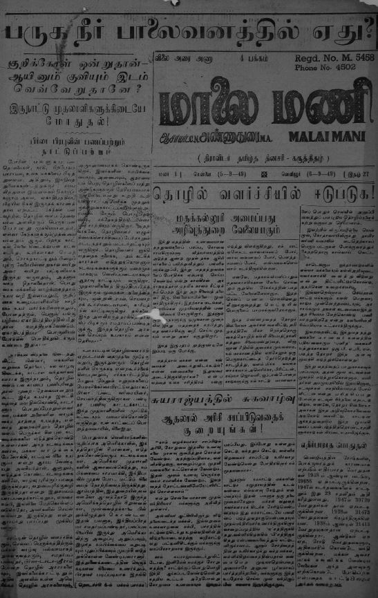 மாலை மணி : திராவிடர் தமிழ்த் தினசரி - க ...