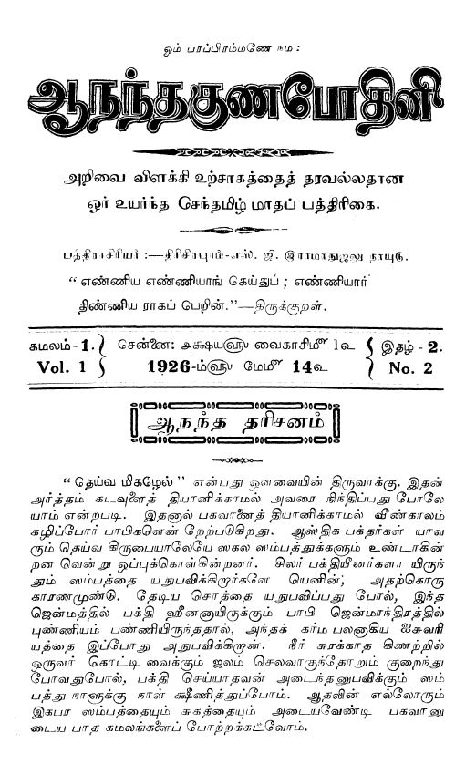 ஆநந்தகுணபோதினி : அறிவை விளக்கி உற்சாகத்தைத் தரவல்லதான ஓர் உயர்ந்த செந்தமிழ் மாதப் பத்திரிகை
