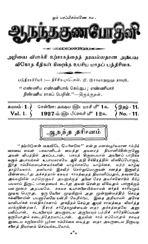 ஆநந்தகுணபோதினி : அறிவை விளக்கி உற்சாகத்தைத் தரவல்லதான அநுபவ விநோத நீதிகள் நிறைந்த உயரிய மாதப் பத்திரிகை