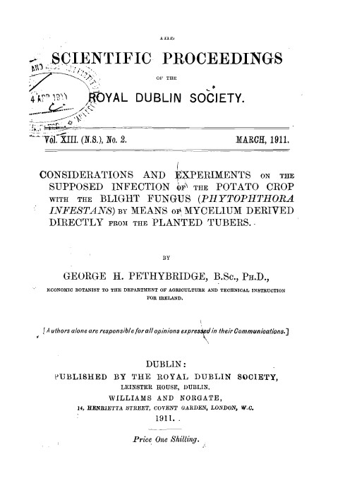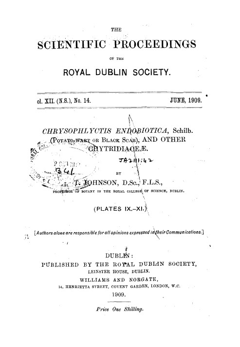 The Scientific Proceedings Royal Dublin Society