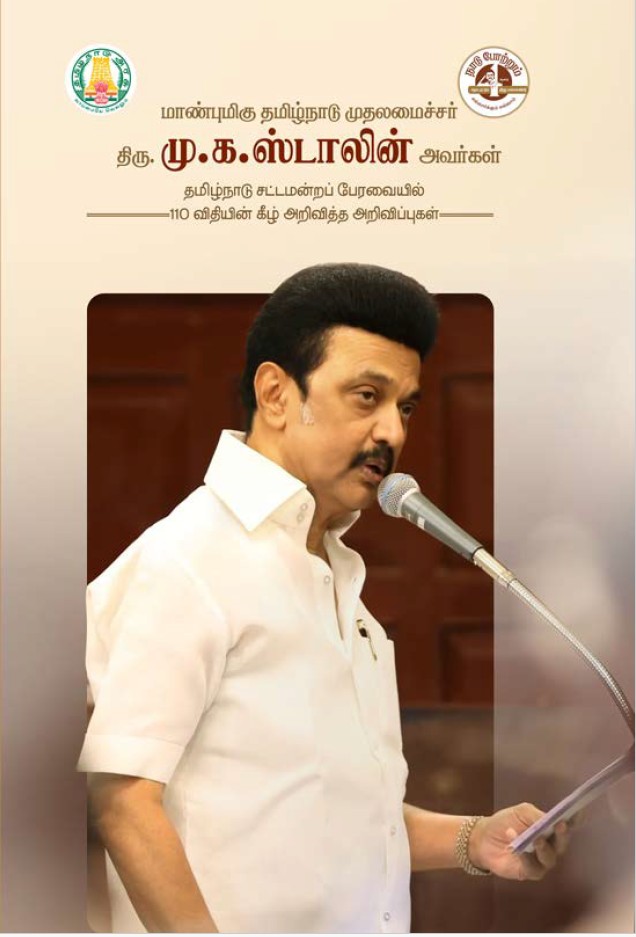 மாண்புமிகு தமிழ்நாடு முதலமைச்சர் திரு. மு.க. ஸ்டாலின் அவர்கள் தமிழ்நாடு சட்டமன்றப் பேரவையில் விதி 110இன் கீழ் அறிவித்த அறிவிப்புகள் (24.08.2021 முதல் 21.04.2023 வரை) - தமிழரசு சிறப்பு வெளியீடு