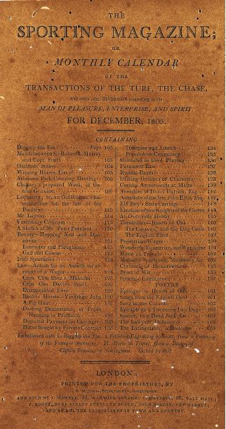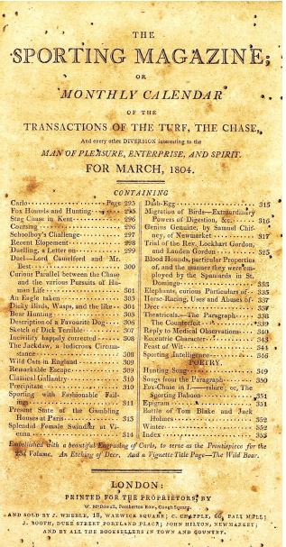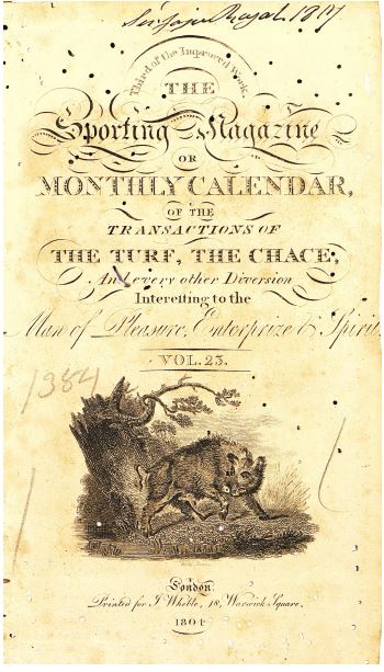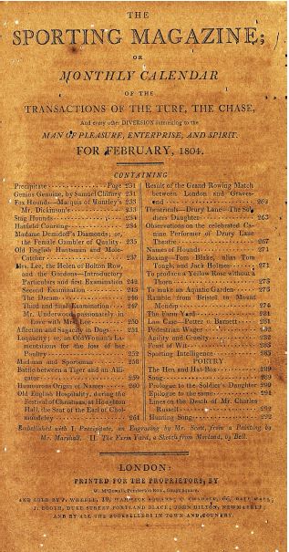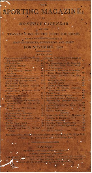 The Sporting magazine : or Monthly calendar of the transactions of the turf, the chace, and every other diversion interesting to the man of pleasure enterprize and spirit