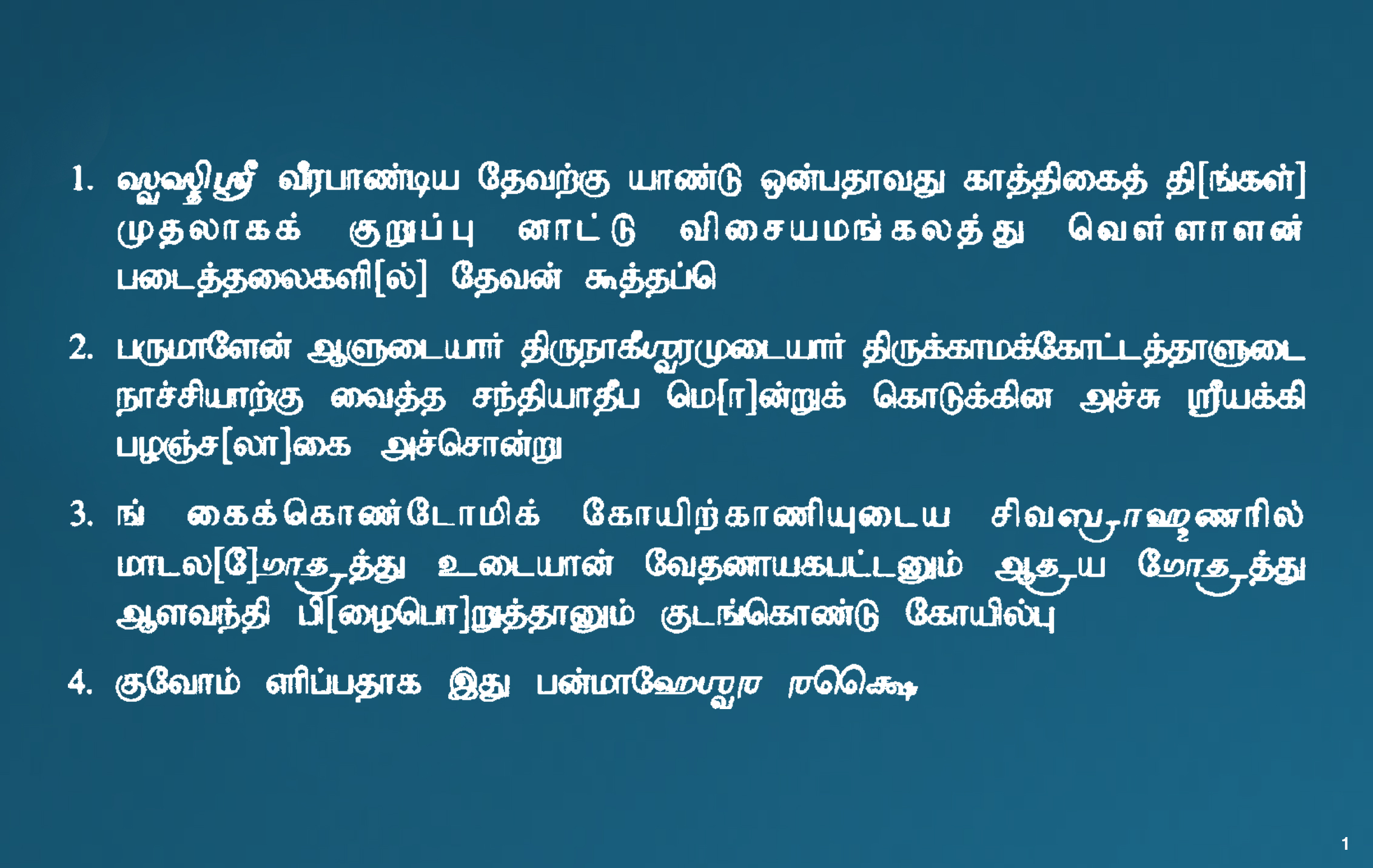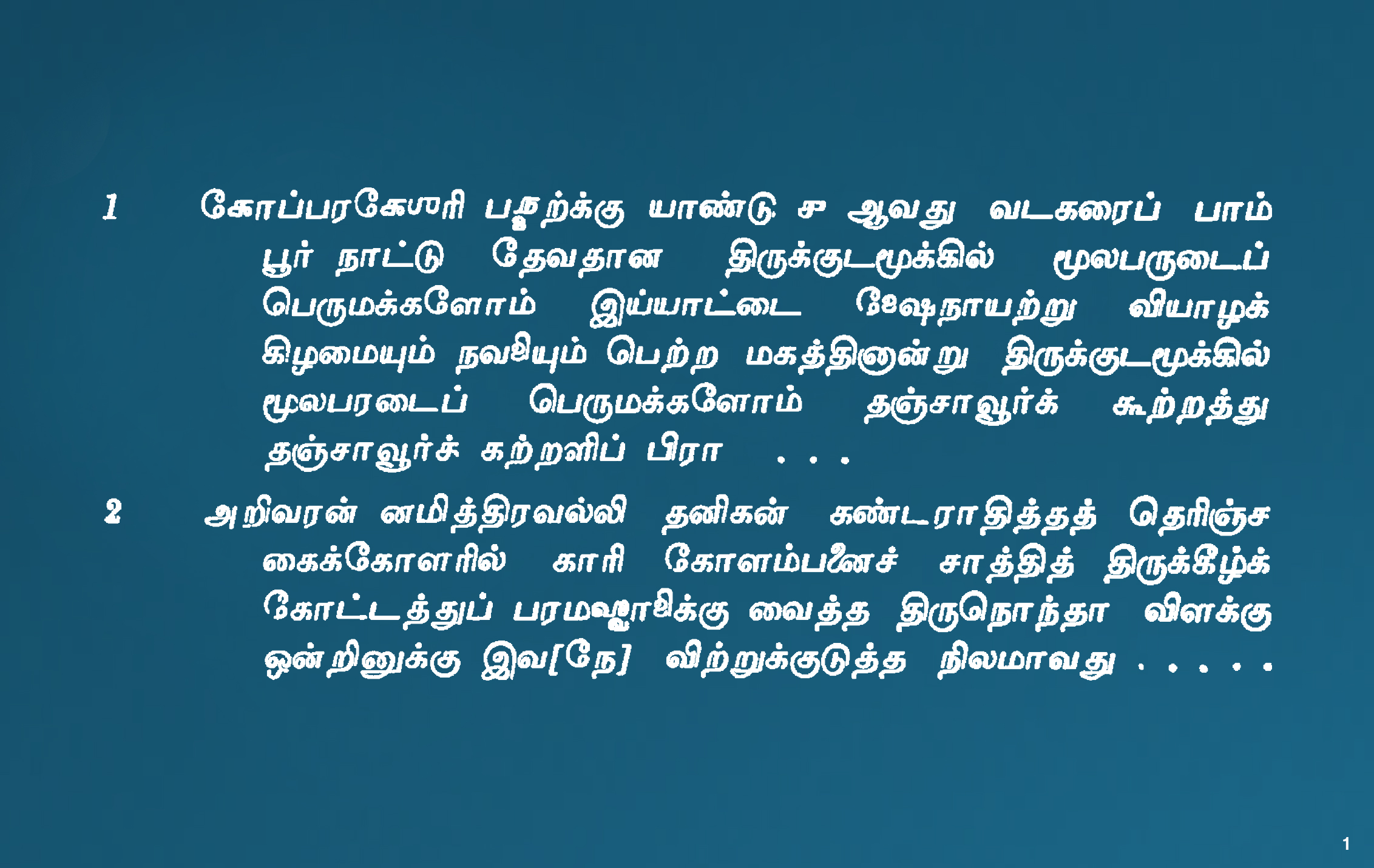 | கல்வெட்டுமின்னுருவாக்கப்பட்டது/ சேகரிக்கப்பட்டதுநிறுவனத்தின்பெயர் | தமிழ்நாடு அரசு தொல்லியல் துறை |