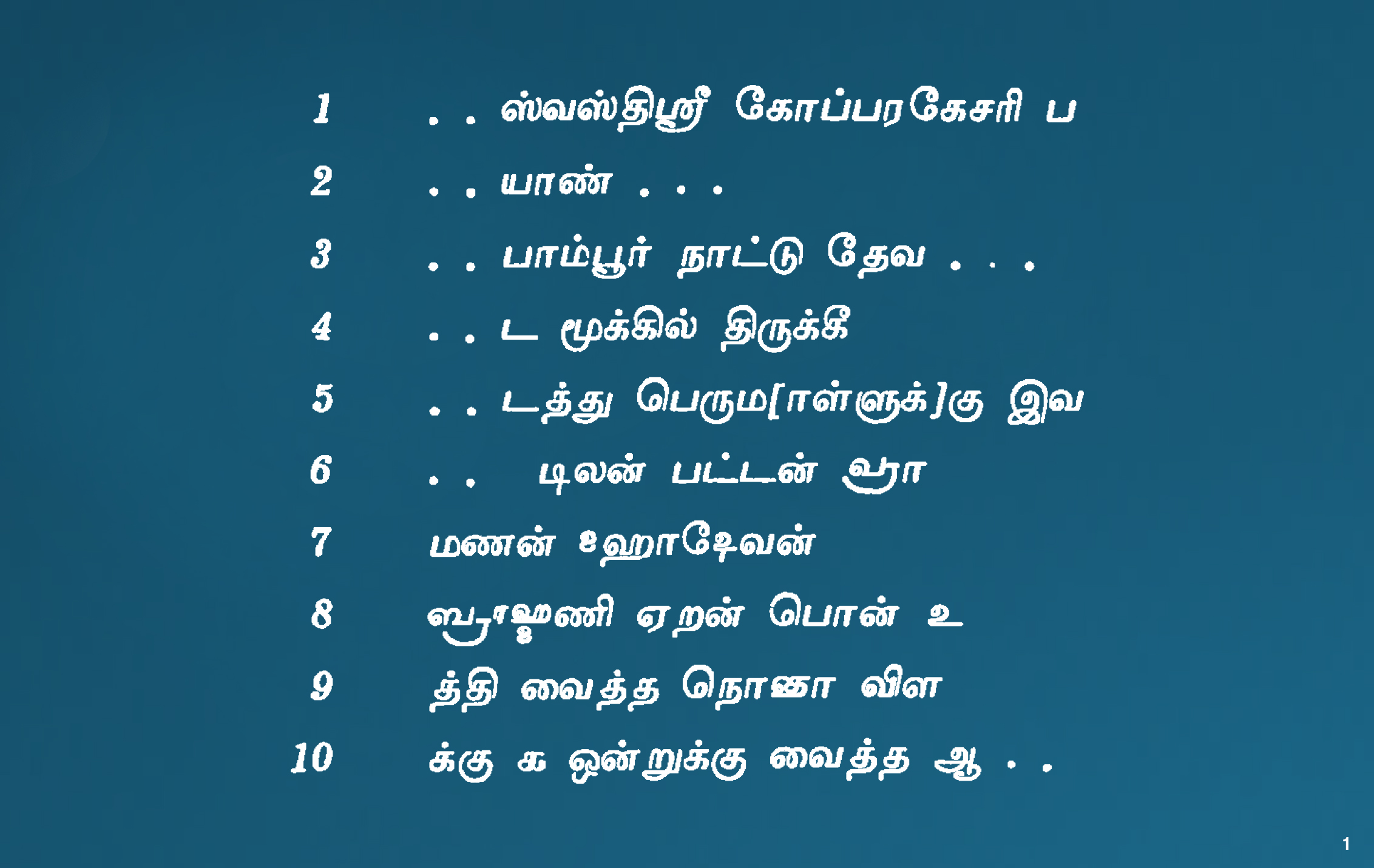| கல்வெட்டுமின்னுருவாக்கப்பட்டது/ சேகரிக்கப்பட்டதுநிறுவனத்தின்பெயர் | தமிழ்நாடு அரசு தொல்லியல் துறை |