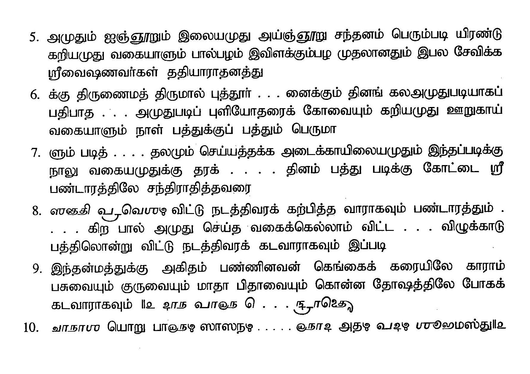 தொடக்கம் மற்றும் கல்வெட்டின் இடையிடையே சிதைந்தும் காணப்படுகின்ற இக்கல்வெட்டு நில தானம் பற்றிய செய்தியினைத் தெரிவிக்கின்றது.