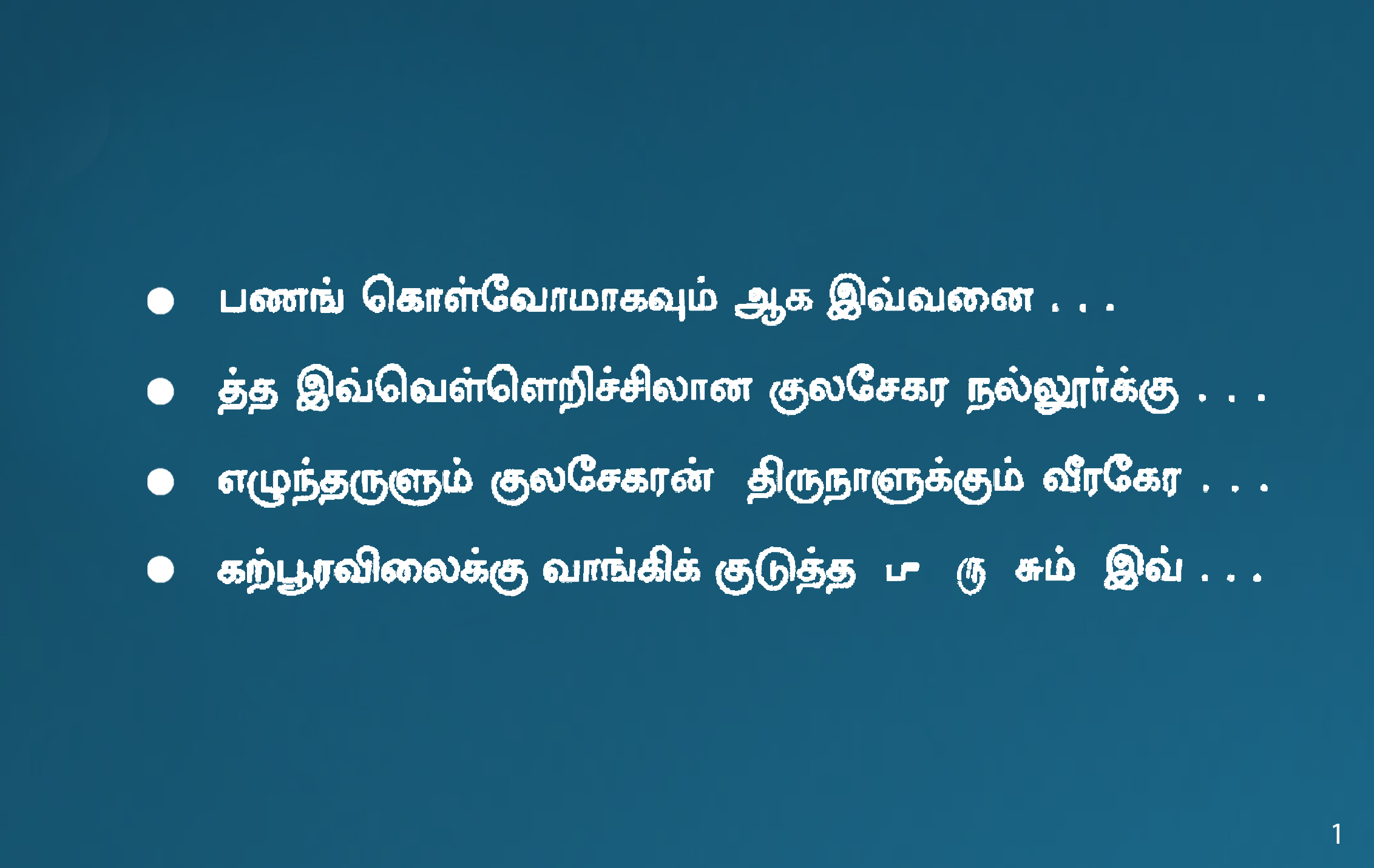 | கல்வெட்டுமின்னுருவாக்கப்பட்டது/ சேகரிக்கப்பட்டதுநிறுவனத்தின்பெயர் | தமிழ்நாடு அரசு தொல்லியல் துறை |