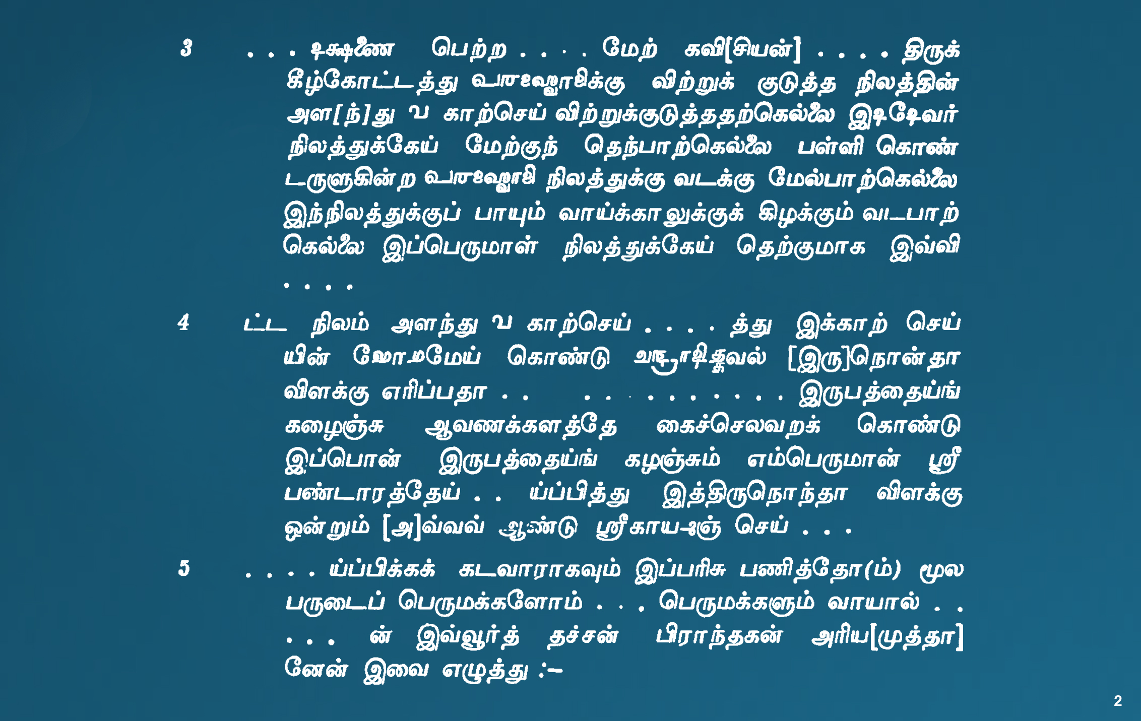 | கல்வெட்டுமின்னுருவாக்கப்பட்டது/ சேகரிக்கப்பட்டதுநிறுவனத்தின்பெயர் | தமிழ்நாடு அரசு தொல்லியல் துறை |