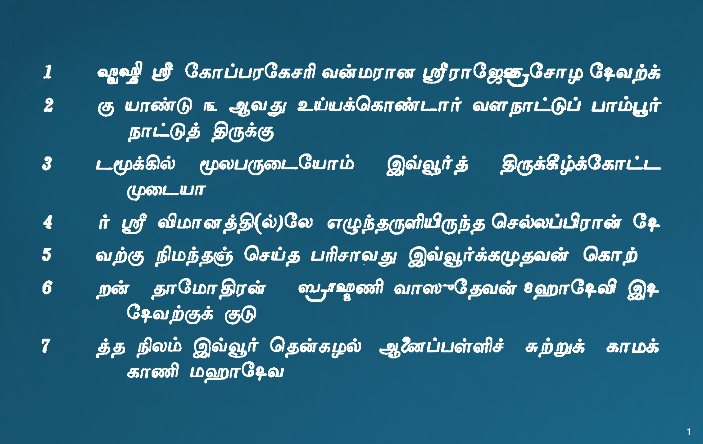 | கல்வெட்டுமின்னுருவாக்கப்பட்டது/ சேகரிக்கப்பட்டதுநிறுவனத்தின்பெயர் | தமிழ்நாடு அரசு தொல்லியல் துறை |