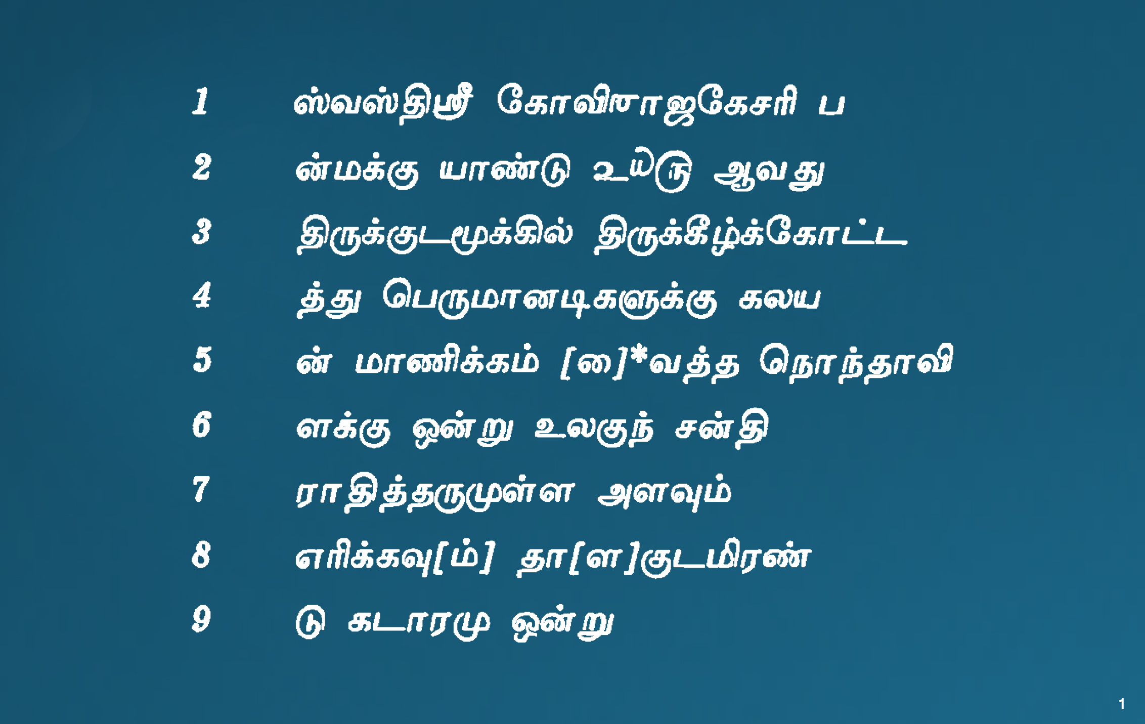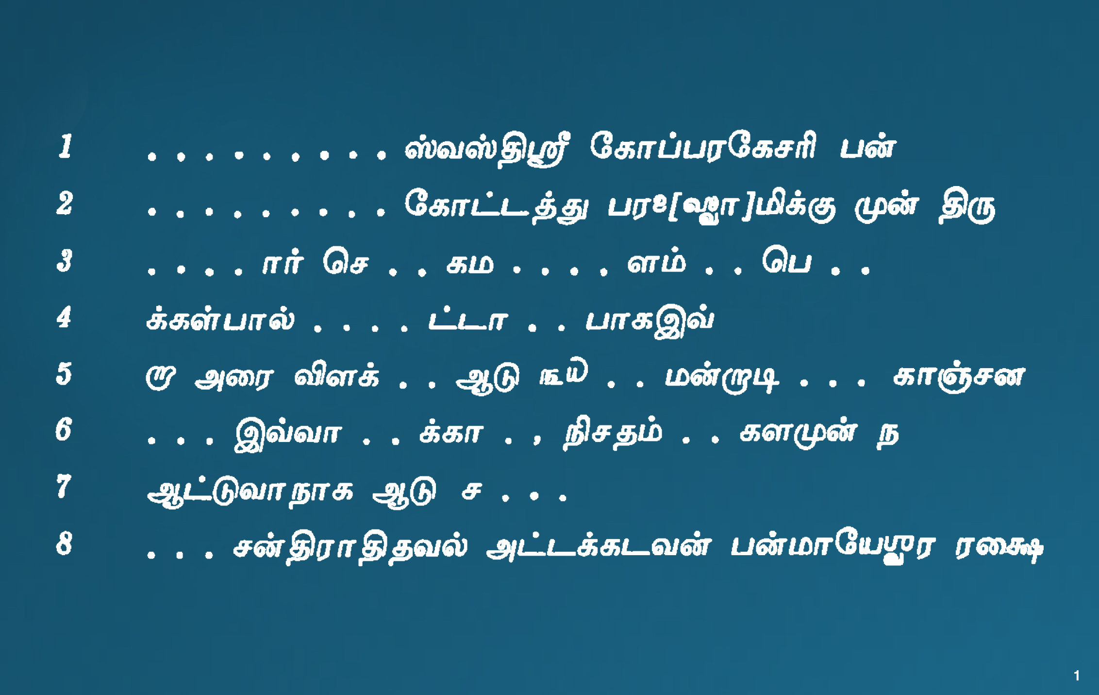 | கல்வெட்டுமின்னுருவாக்கப்பட்டது/ சேகரிக்கப்பட்டதுநிறுவனத்தின்பெயர் | தமிழ்நாடு அரசு தொல்லியல் துறை |
