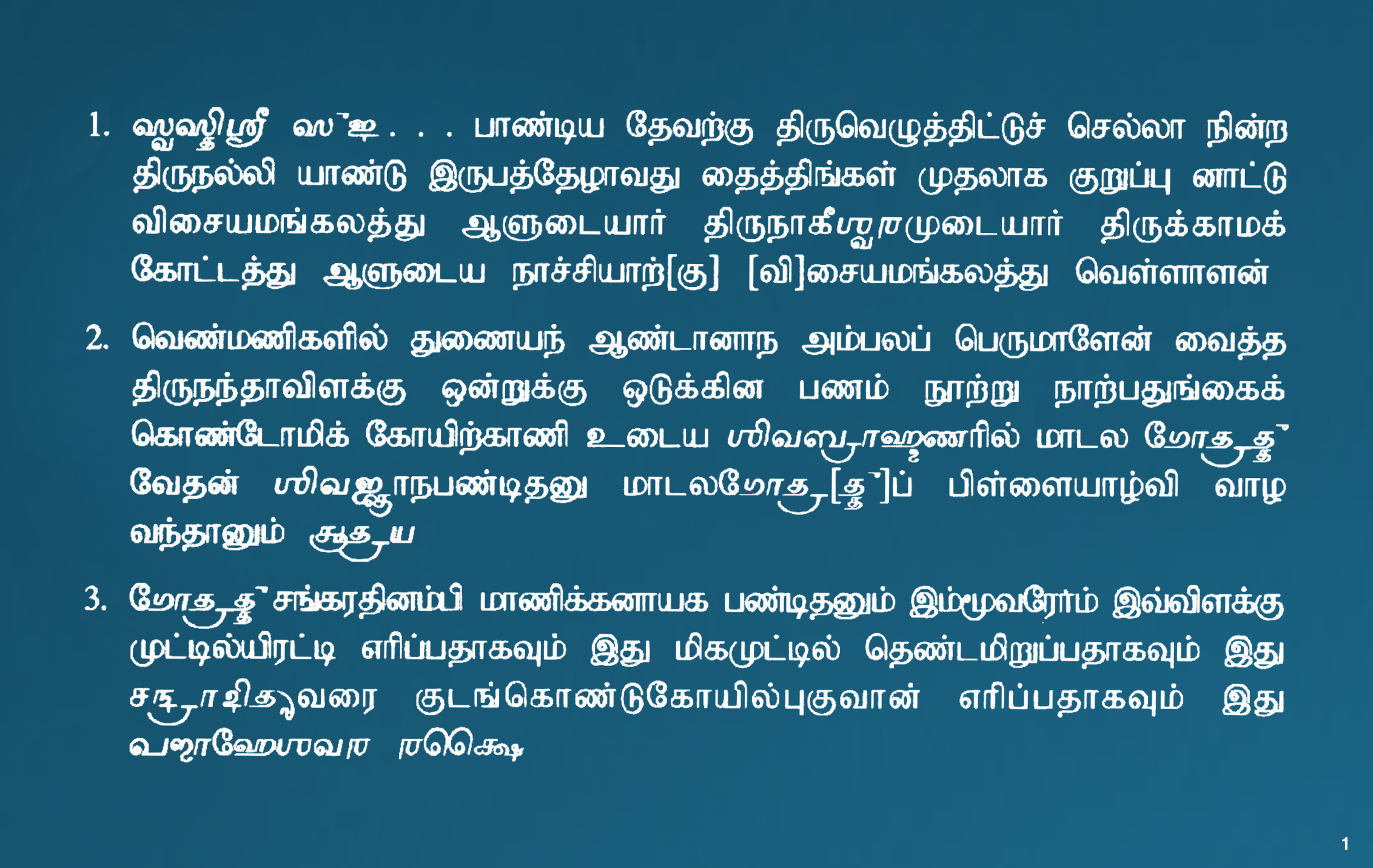 | கல்வெட்டுமின்னுருவாக்கப்பட்டது/ சேகரிக்கப்பட்டதுநிறுவனத்தின்பெயர் | தமிழ்நாடு அரசு தொல்லியல் துறை |