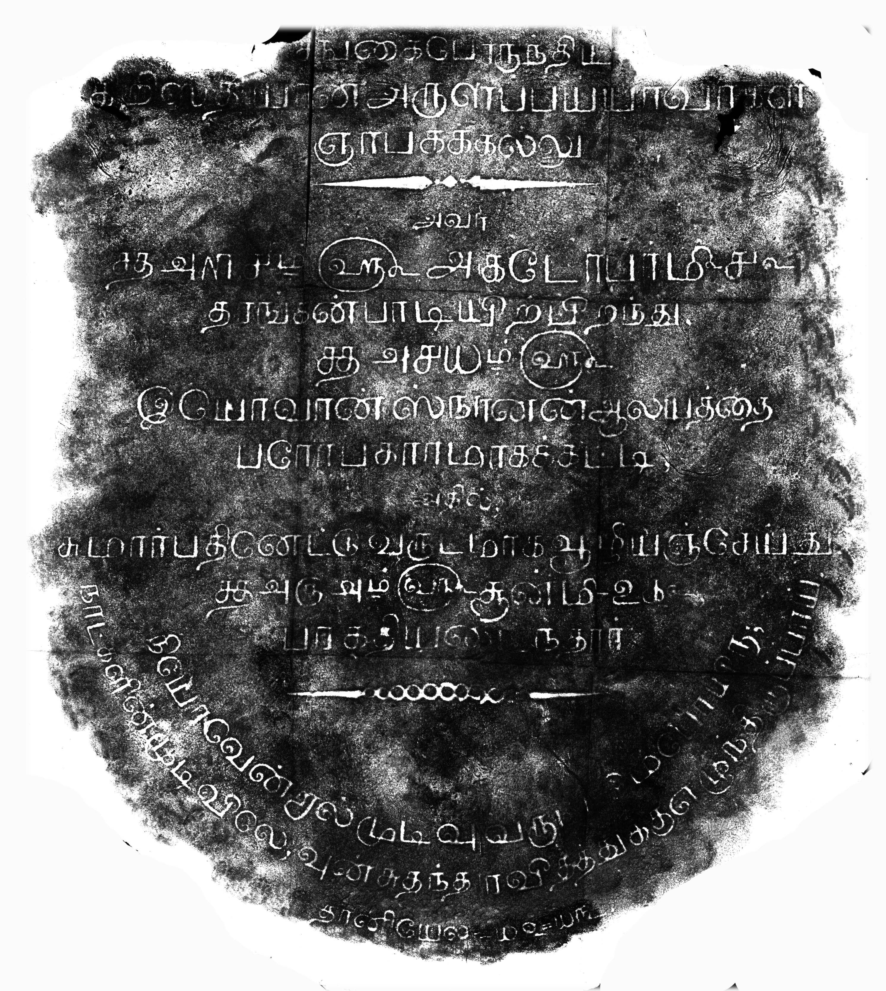 | கல்வெட்டுமின்னுருவாக்கப்பட்டது/ சேகரிக்கப்பட்டதுநிறுவனத்தின்பெயர் | தமிழ்நாடு அரசு தொல்லியல் துறை |