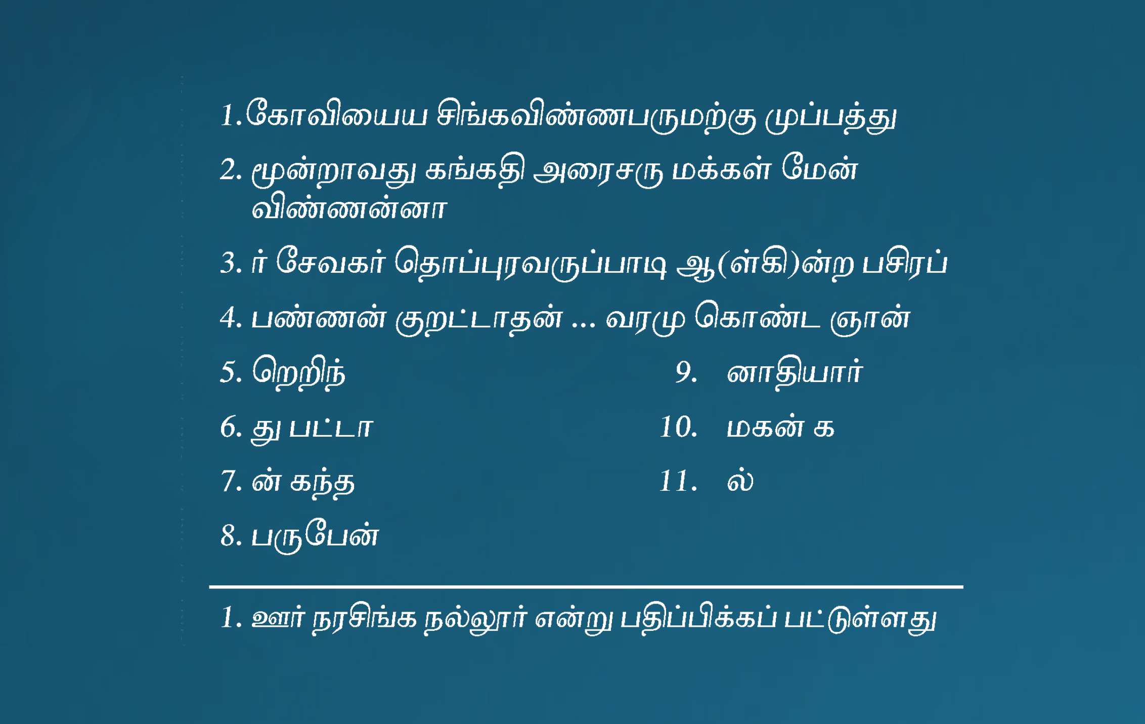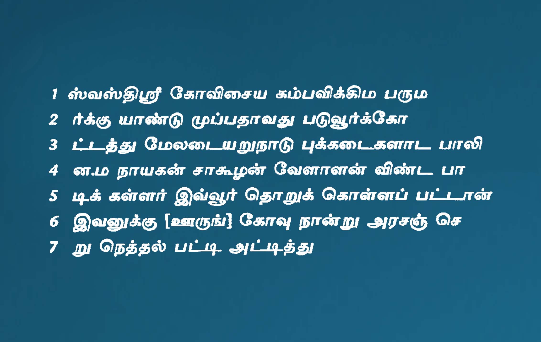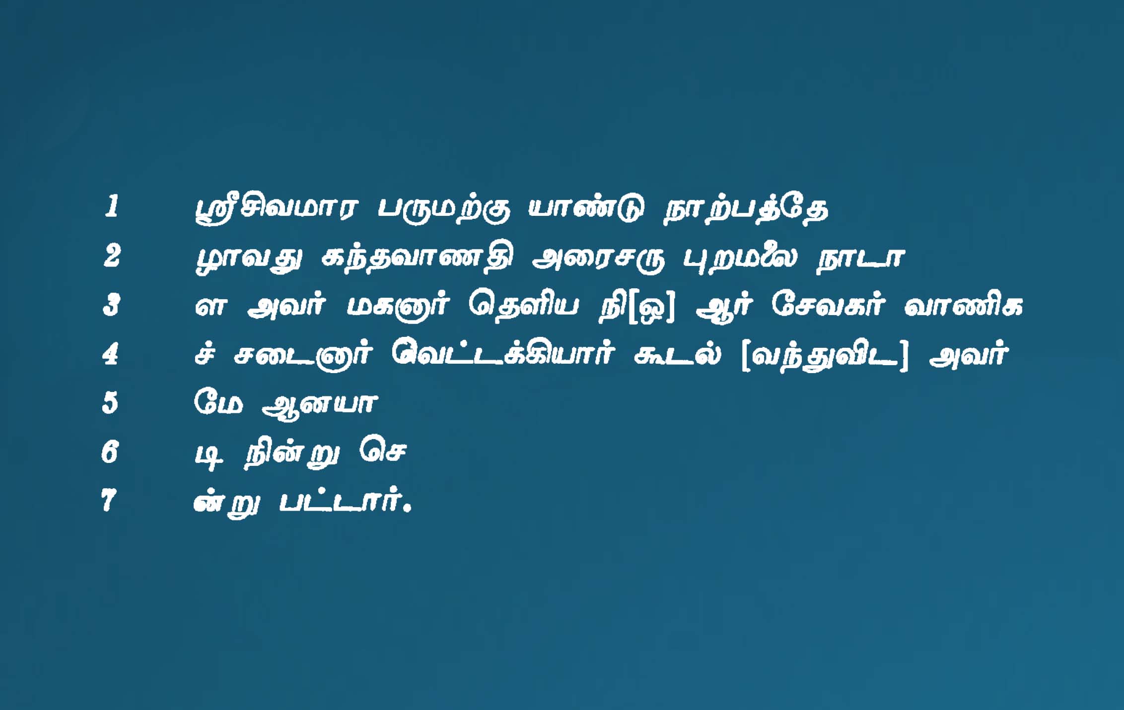 | கல்வெட்டுமின்னுருவாக்கப்பட்டது/ சேகரிக்கப்பட்டதுநிறுவனத்தின்பெயர் | தமிழ்நாடு அரசு தொல்லியல் துறை |