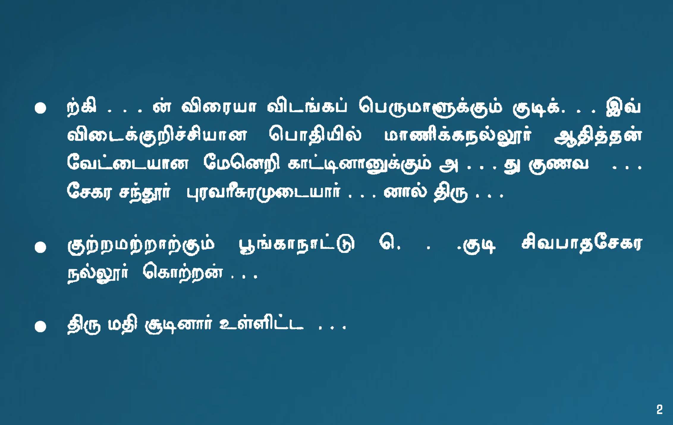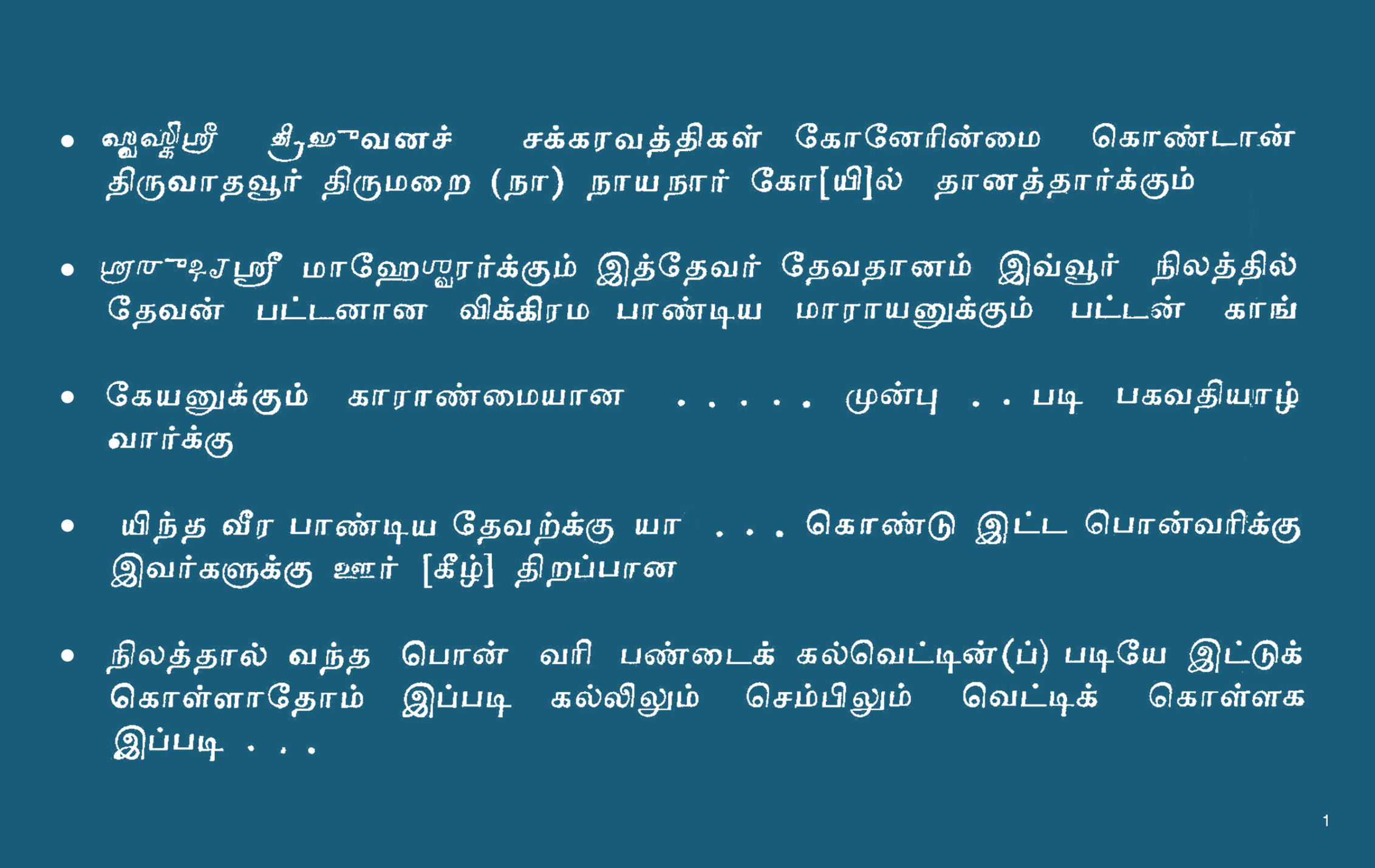 | கல்வெட்டுமின்னுருவாக்கப்பட்டது/ சேகரிக்கப்பட்டதுநிறுவனத்தின்பெயர் | தமிழ்நாடு அரசு தொல்லியல் துறை |