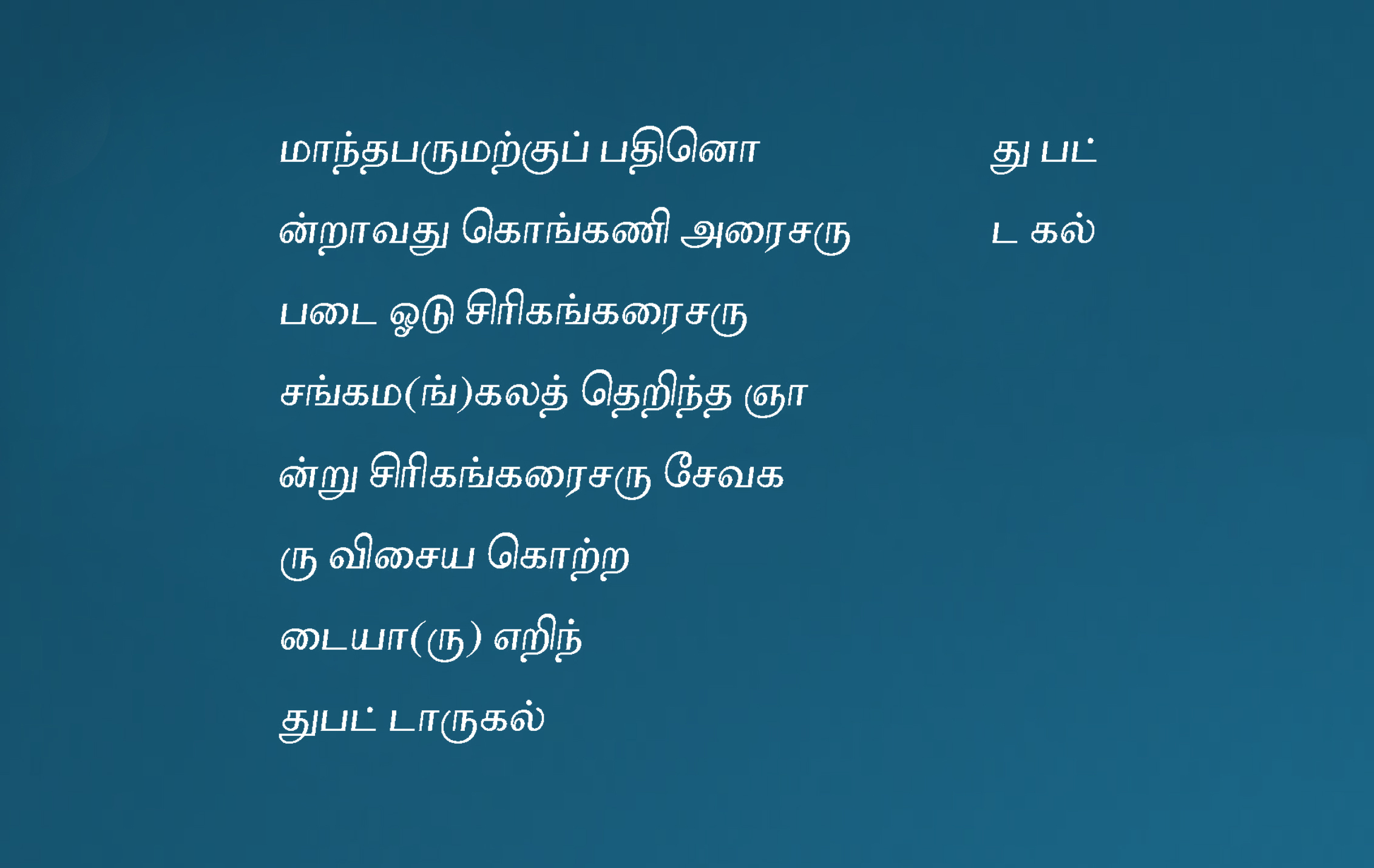 | கல்வெட்டுமின்னுருவாக்கப்பட்டது/ சேகரிக்கப்பட்டதுநிறுவனத்தின்பெயர் | தமிழ்நாடு அரசு தொல்லியல் துறை |