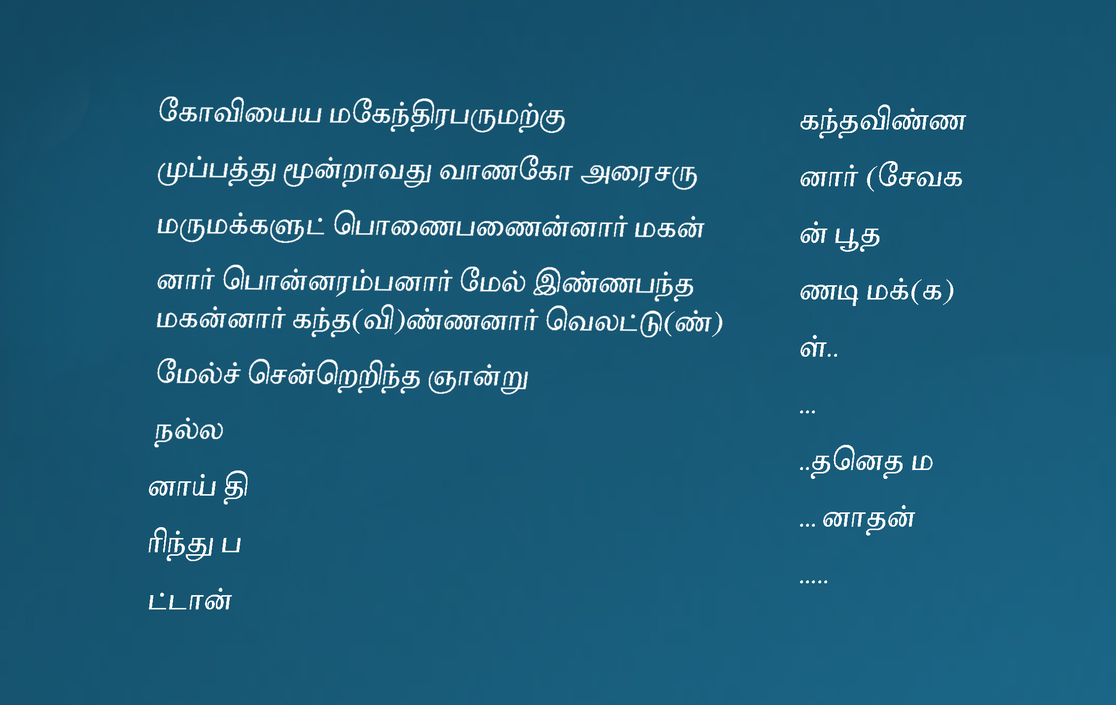 | கல்வெட்டுமின்னுருவாக்கப்பட்டது/ சேகரிக்கப்பட்டதுநிறுவனத்தின்பெயர் | தமிழ்நாடு அரசு தொல்லியல் துறை |