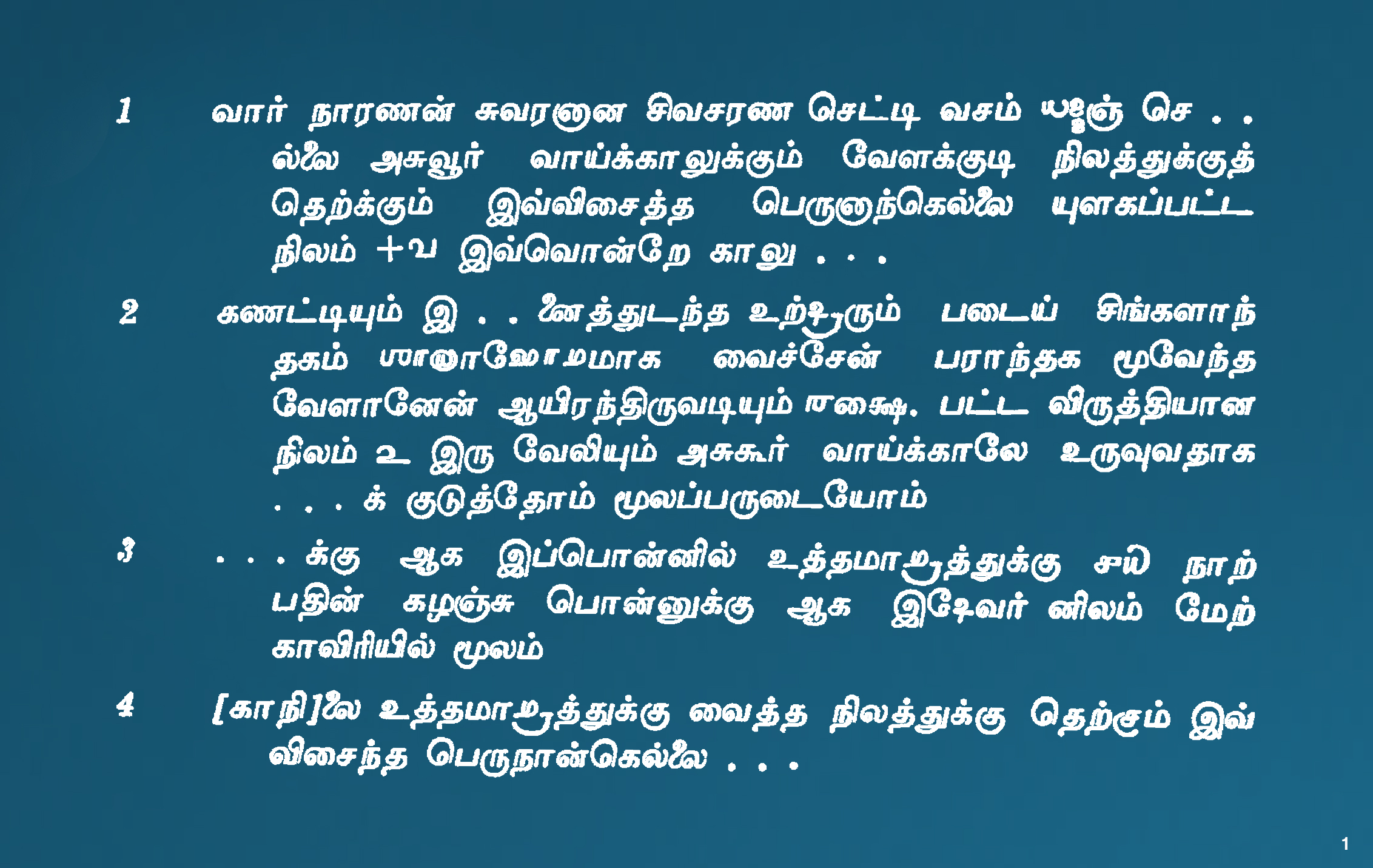 | கல்வெட்டுமின்னுருவாக்கப்பட்டது/ சேகரிக்கப்பட்டதுநிறுவனத்தின்பெயர் | தமிழ்நாடு அரசு தொல்லியல் துறை |