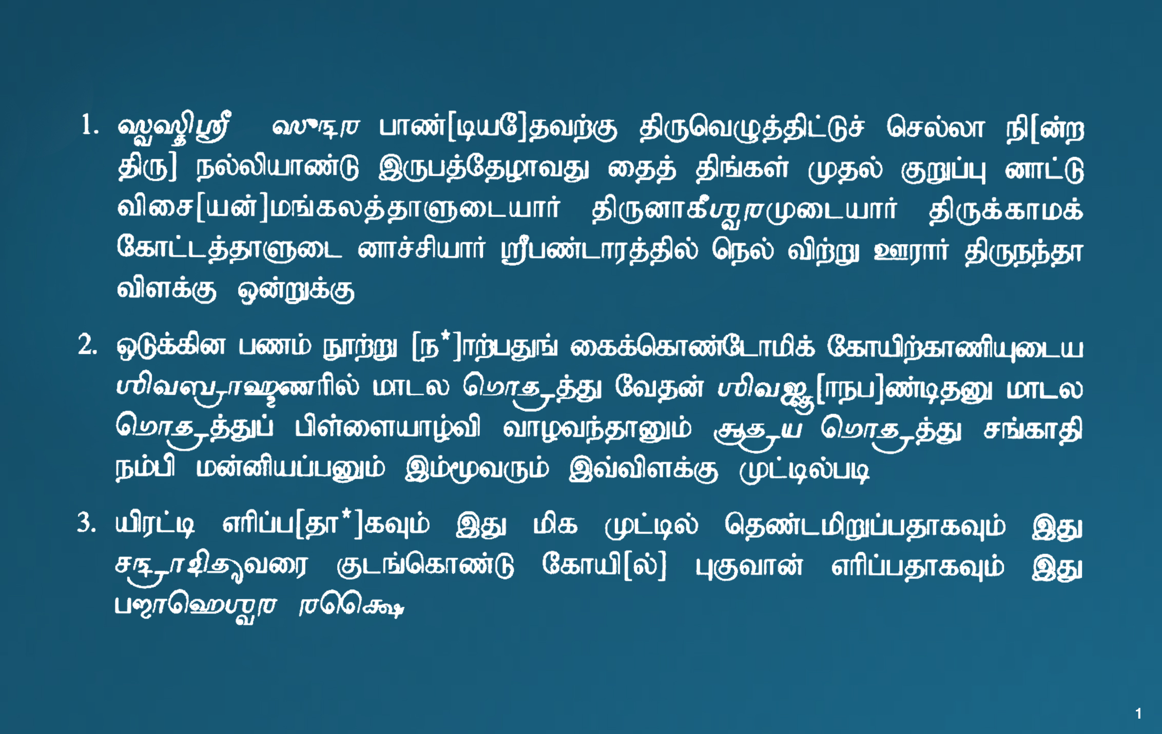 | கல்வெட்டுமின்னுருவாக்கப்பட்டது/ சேகரிக்கப்பட்டதுநிறுவனத்தின்பெயர் | தமிழ்நாடு அரசு தொல்லியல் துறை |