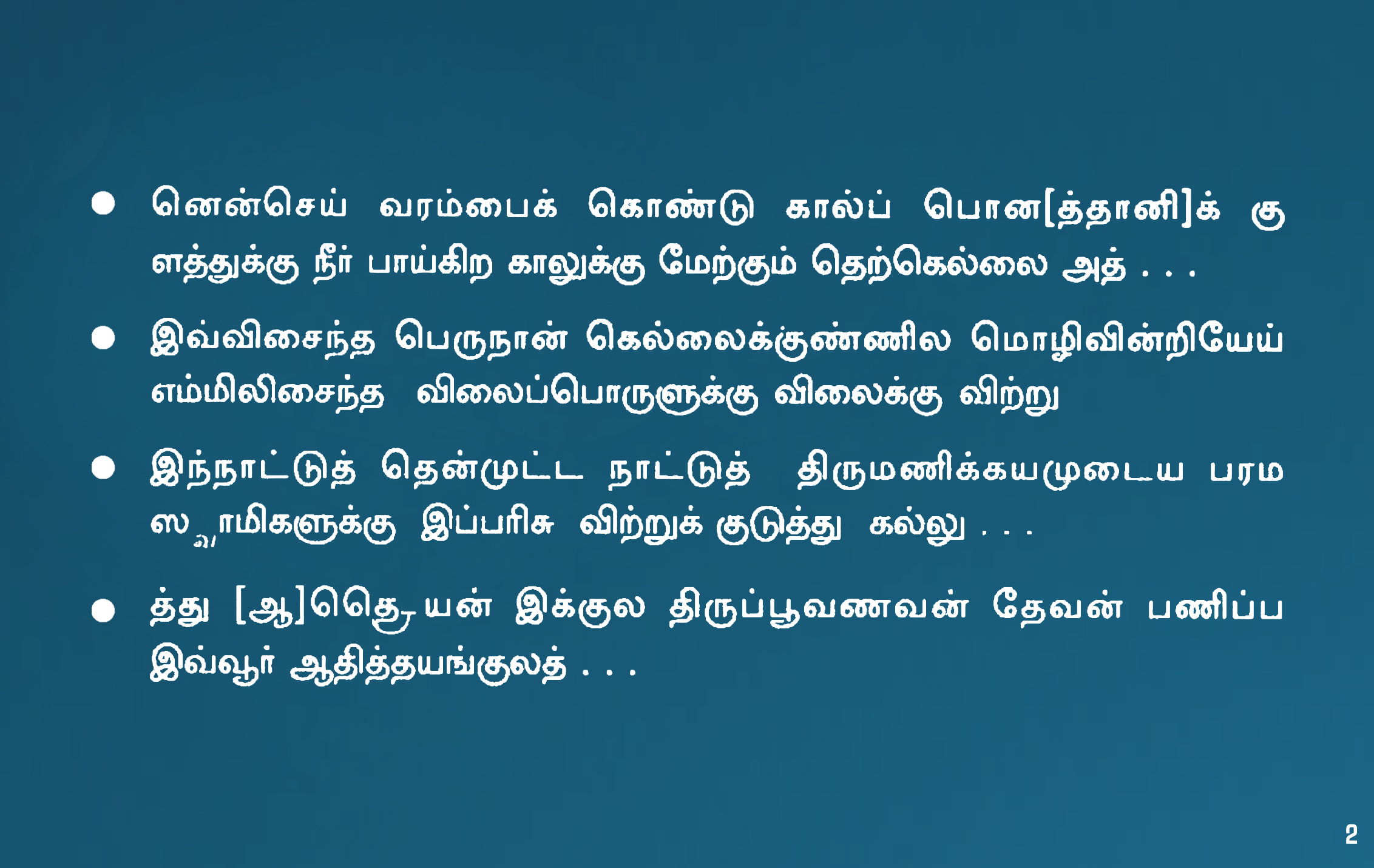 | கல்வெட்டுமின்னுருவாக்கப்பட்டது/ சேகரிக்கப்பட்டதுநிறுவனத்தின்பெயர் | தமிழ் இணையக் கல்விக்கழகம் |