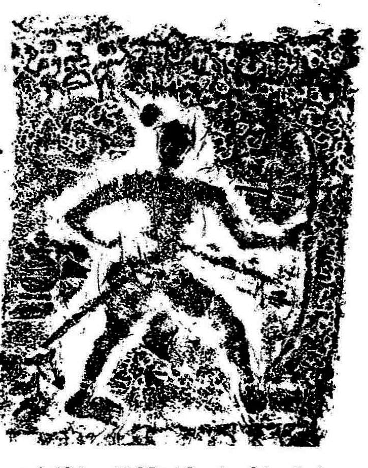பலகைக் கல்லின் ஒருபக்கத்தில் இடது காலை முன்வைத்த நிலை யில் ஒரு வீரனின் உருவம் செதுக்கப்பட்டுள்ளது. வட்ட வடிவக் கொண்டையுடைய அவ்வீரனின் வலக்கையில் கீழ்நோக்கிய நீண்ட கத்தியும், இடக்கையில் வில்லும் உள்ளன. மூன்று அம்புகள் உடலைத் துளைத்துள்ளன. நடுக்கல்லின் வலப்புற மேல்பகுதியில் இரு பெண்களுக்கு நடுவே அமர்ந்த நிலையில் வீரனின் உருவம் ஒன்றும் உள்ளது. கீழ்ப்பகுதியில் மூடியுடனுள்ள பூரண கும்பம் ஒன்றுள்ளது. அதன் அருகே இரண்டு காளைகள் செதுக்கப்பட்டுள்ளன. வீரனின் உருவத்தைச் சுற்றி 10-ஆம் நூற்றாண்டு தமிழ் எழுத்துகளில் கல்வெட்டு பொறிக்கப்பட்டுள்ளது. வீரனின் உருவத்திற்கு வலப்புறத்தில் கிரந்த எழுத்தில் முதல் வரி வெட்டப்பட்டுள்ளது. கல்வெட்டின் மற்ற பகுதியில் கிரந்த எழுத்துகள் பயன்படுத்தப்படவில்லை . 7, 8 வரிகள் மேலிருந்து கீழாக வெட்டப்பட்டுள்ளன. பார்த்திவேந்திர வர்மனின் 16ஆம் ஆட்சியாண்டில் (கி.பி. 972) இந் நடுகல் வெட்டப்பட்டது. பராந்தகய நல்லாண்டார் என்பார் விளத்தூரில் நடைபற்ற போரில் ஈடுபட்டு மாண்டதன் நினைவாக இந்நடுகல் எடுப்பிக்கப் பெற்றது.