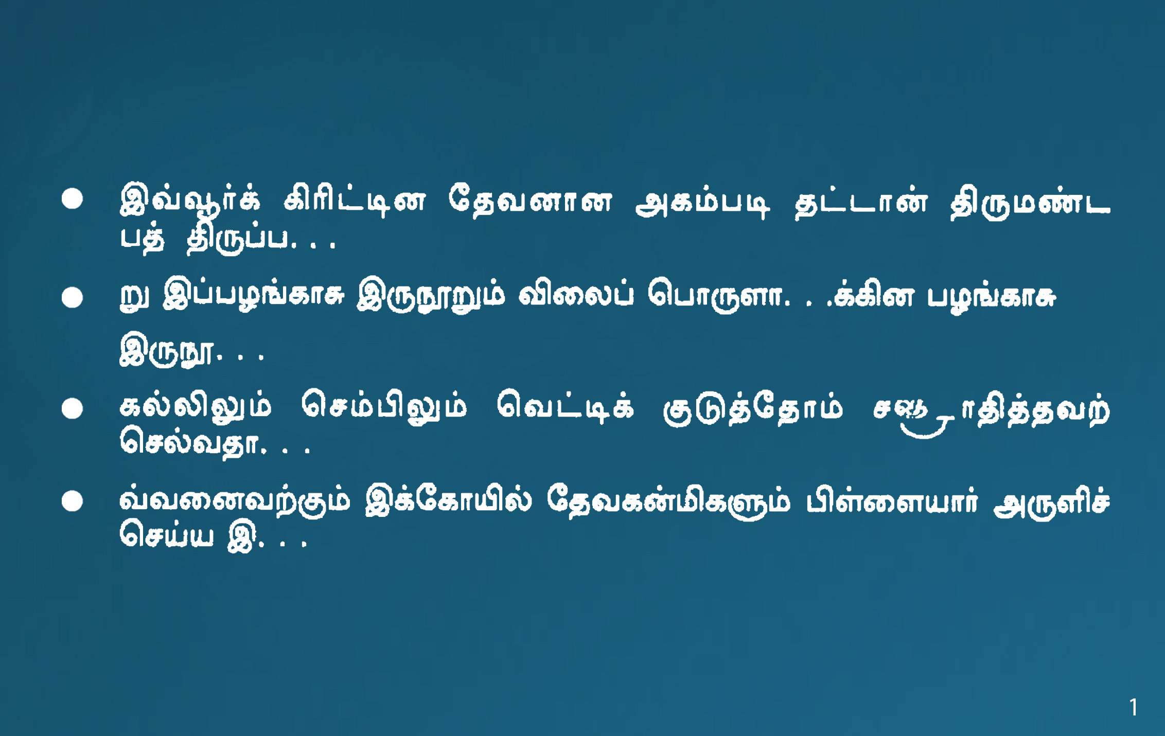 | கல்வெட்டுமின்னுருவாக்கப்பட்டது/ சேகரிக்கப்பட்டதுநிறுவனத்தின்பெயர் | தமிழ்நாடு அரசு தொல்லியல் துறை |
