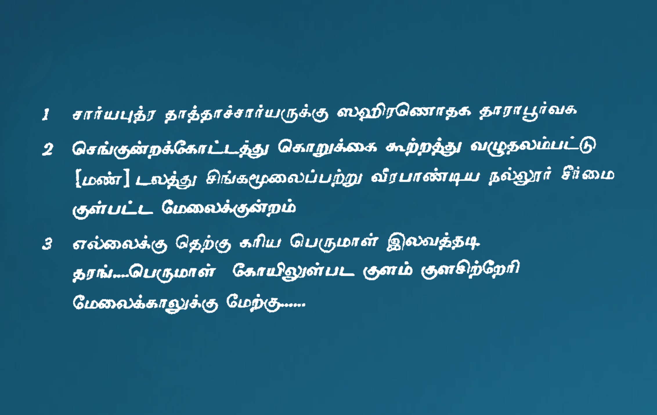 | கல்வெட்டுமின்னுருவாக்கப்பட்டது/ சேகரிக்கப்பட்டதுநிறுவனத்தின்பெயர் | தமிழ் இணையக் கல்விக்கழகம் |