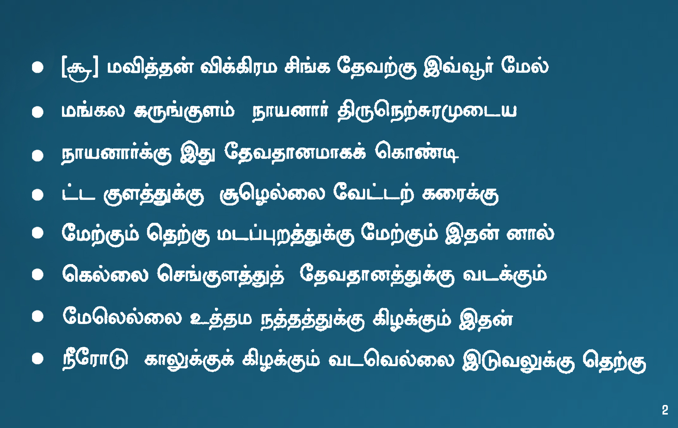 | கல்வெட்டுமின்னுருவாக்கப்பட்டது/ சேகரிக்கப்பட்டதுநிறுவனத்தின்பெயர் | தமிழ்நாடு அரசு தொல்லியல் துறை |