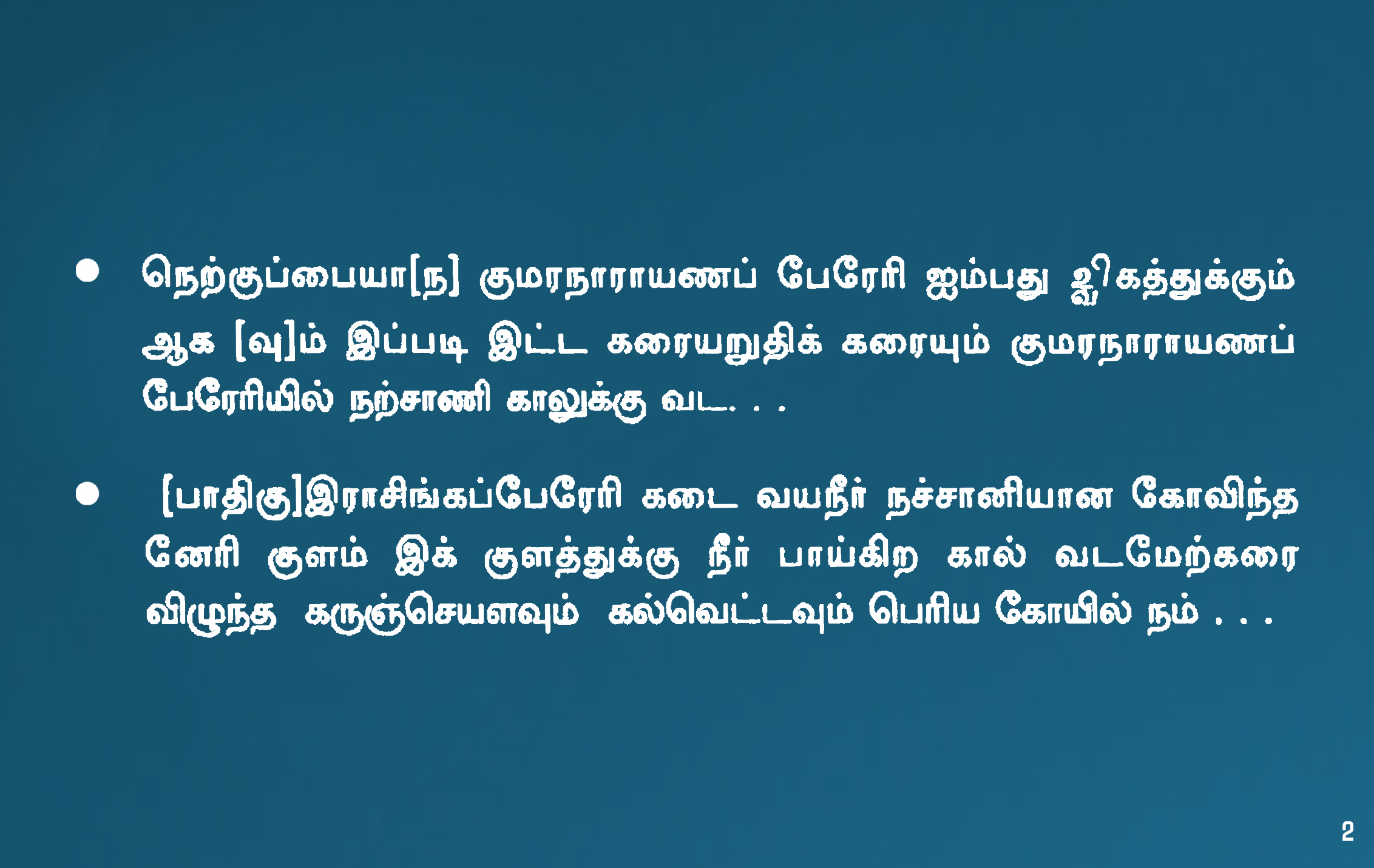 | கல்வெட்டுமின்னுருவாக்கப்பட்டது/ சேகரிக்கப்பட்டதுநிறுவனத்தின்பெயர் | தமிழ்நாடு அரசு தொல்லியல் துறை |