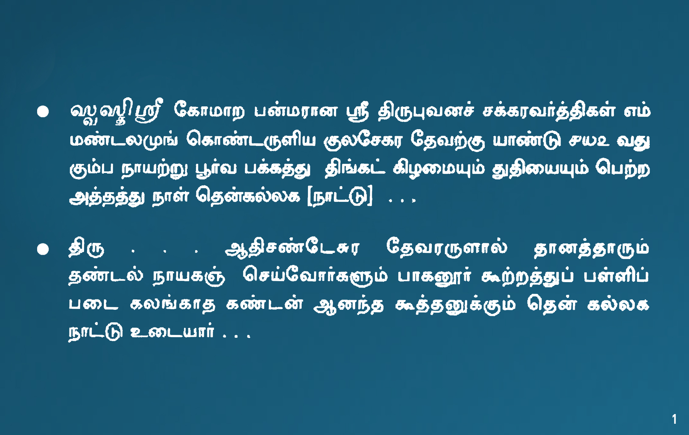 | கல்வெட்டுமின்னுருவாக்கப்பட்டது/ சேகரிக்கப்பட்டதுநிறுவனத்தின்பெயர் | தமிழ்நாடு அரசு தொல்லியல் துறை |