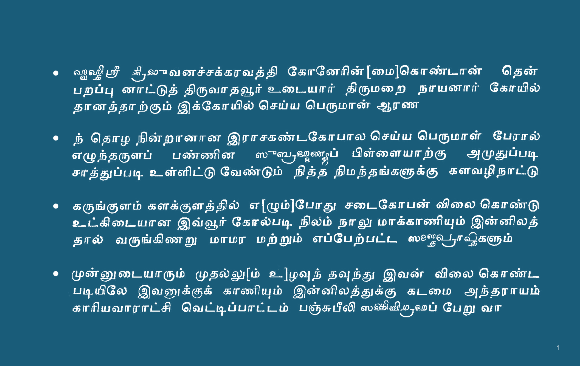| கல்வெட்டுமின்னுருவாக்கப்பட்டது/ சேகரிக்கப்பட்டதுநிறுவனத்தின்பெயர் | தமிழ்நாடு அரசு தொல்லியல் துறை |