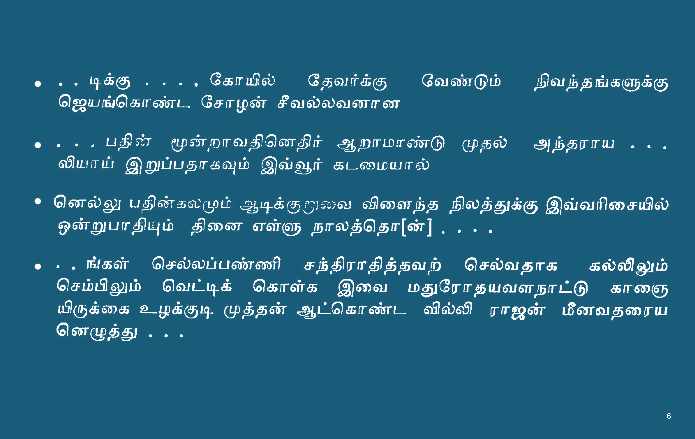 | கல்வெட்டுமின்னுருவாக்கப்பட்டது/ சேகரிக்கப்பட்டதுநிறுவனத்தின்பெயர் | தமிழ்நாடு அரசு தொல்லியல் துறை |