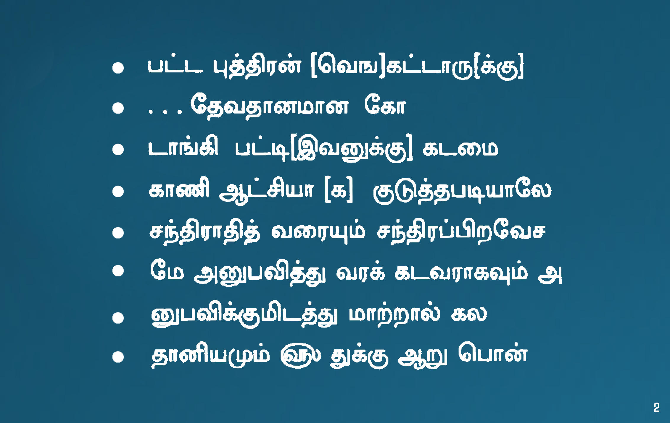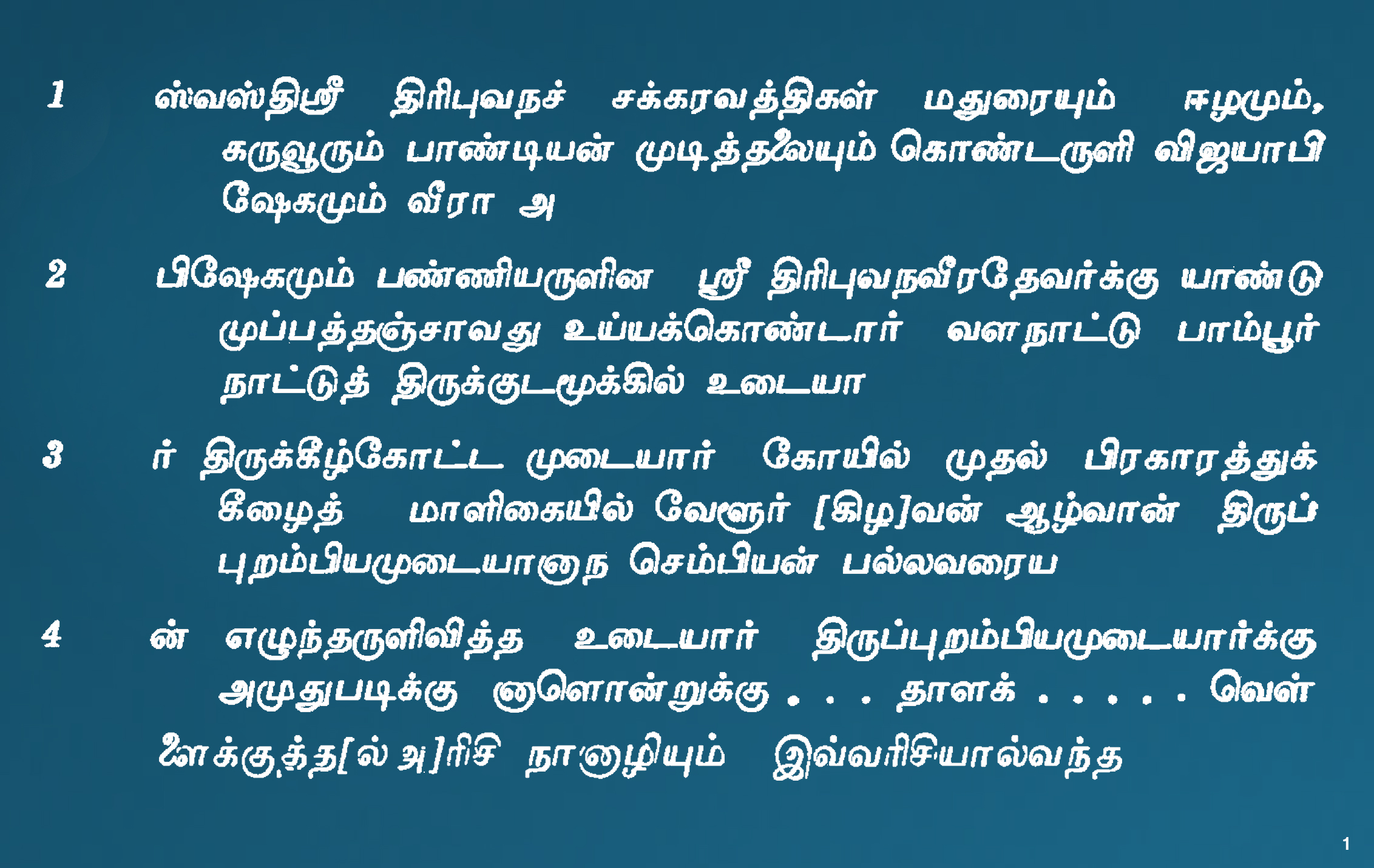 | கல்வெட்டுமின்னுருவாக்கப்பட்டது/ சேகரிக்கப்பட்டதுநிறுவனத்தின்பெயர் | தமிழ் இணையக் கல்விக்கழகம் |