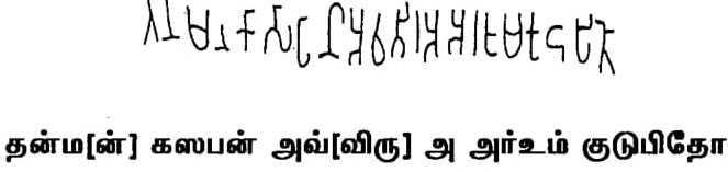 I.Mahadevan, Early Tamil Epigraphy , உலகத் தமிழாராய்ச்சி நிறுவனம், சென்னை, தி.ஸ்ரீ.ஸ்ரீதர் (பதி.ஆ) தமிழ்-பிராமி கல்வெட்டுகள், தமிழ்நாடு அரசு தொல்லியல் துறை, சென்னை