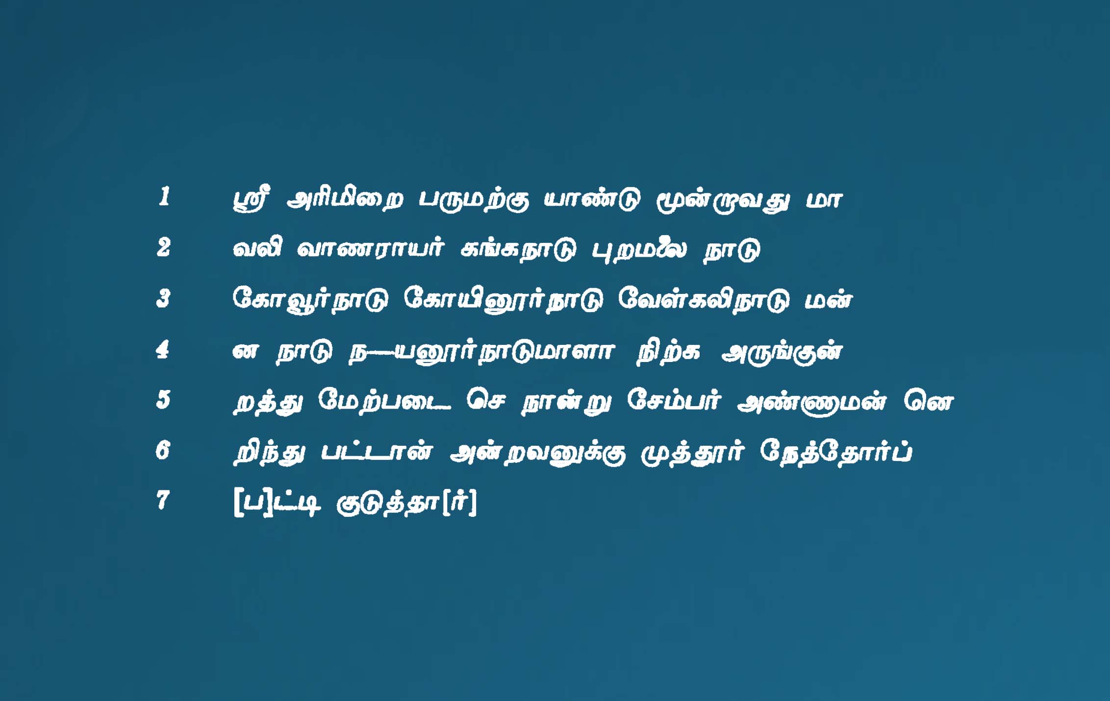 | கல்வெட்டுமின்னுருவாக்கப்பட்டது/ சேகரிக்கப்பட்டதுநிறுவனத்தின்பெயர் | தமிழ்நாடு அரசு தொல்லியல் துறை |