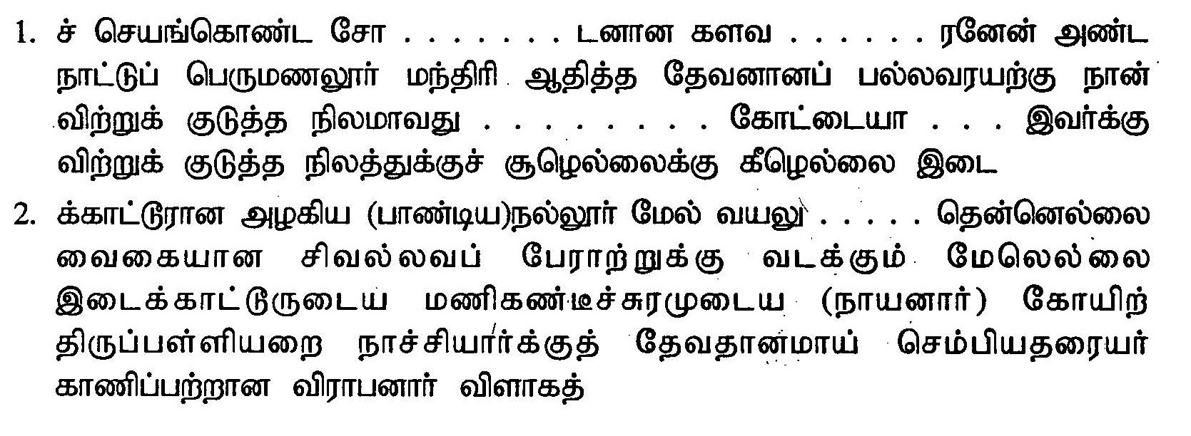 | கல்வெட்டுமின்னுருவாக்கப்பட்டது/ சேகரிக்கப்பட்டதுநிறுவனத்தின்பெயர் | தமிழ்நாடு அரசு தொல்லியல் துறை |