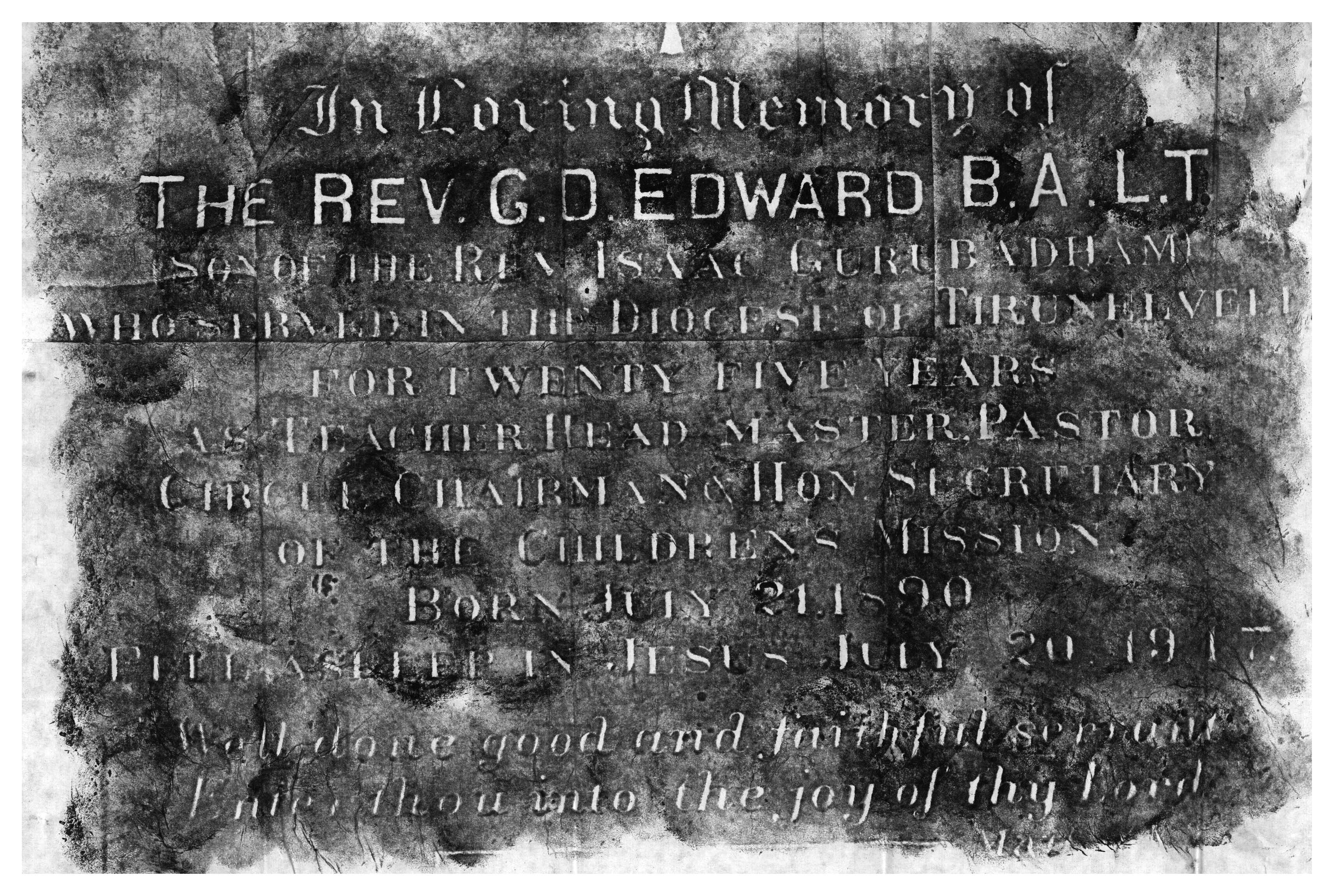 | கல்வெட்டு அமைந்துள்ள இடம் | ஏ.ஜி. தேவாலயம் |