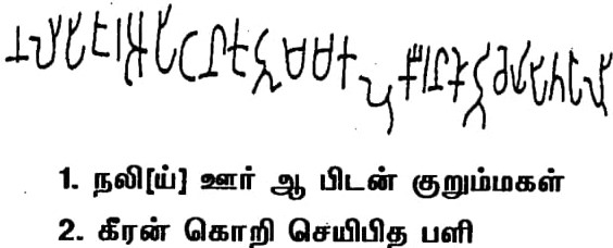 I.Mahadevan, Early Tamil Epigraphy , உலகத் தமிழாராய்ச்சி நிறுவனம், சென்னை, தி.ஸ்ரீ.ஸ்ரீதர் (பதி.ஆ) தமிழ்-பிராமி கல்வெட்டுகள், தமிழ்நாடு அரசு தொல்லியல் துறை, சென்னை