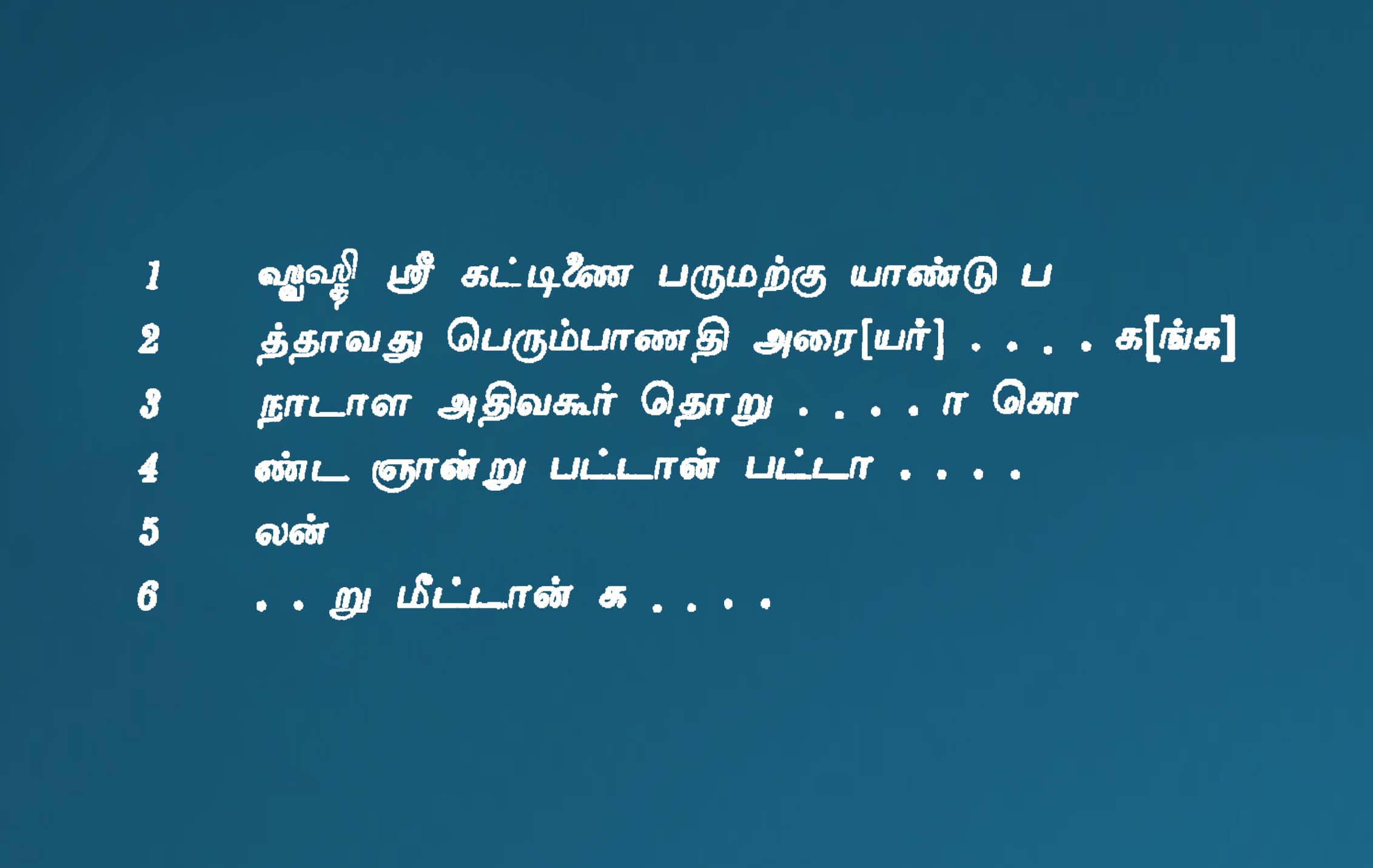 | கல்வெட்டுமின்னுருவாக்கப்பட்டது/ சேகரிக்கப்பட்டதுநிறுவனத்தின்பெயர் | தமிழ்நாடு அரசு தொல்லியல் துறை |