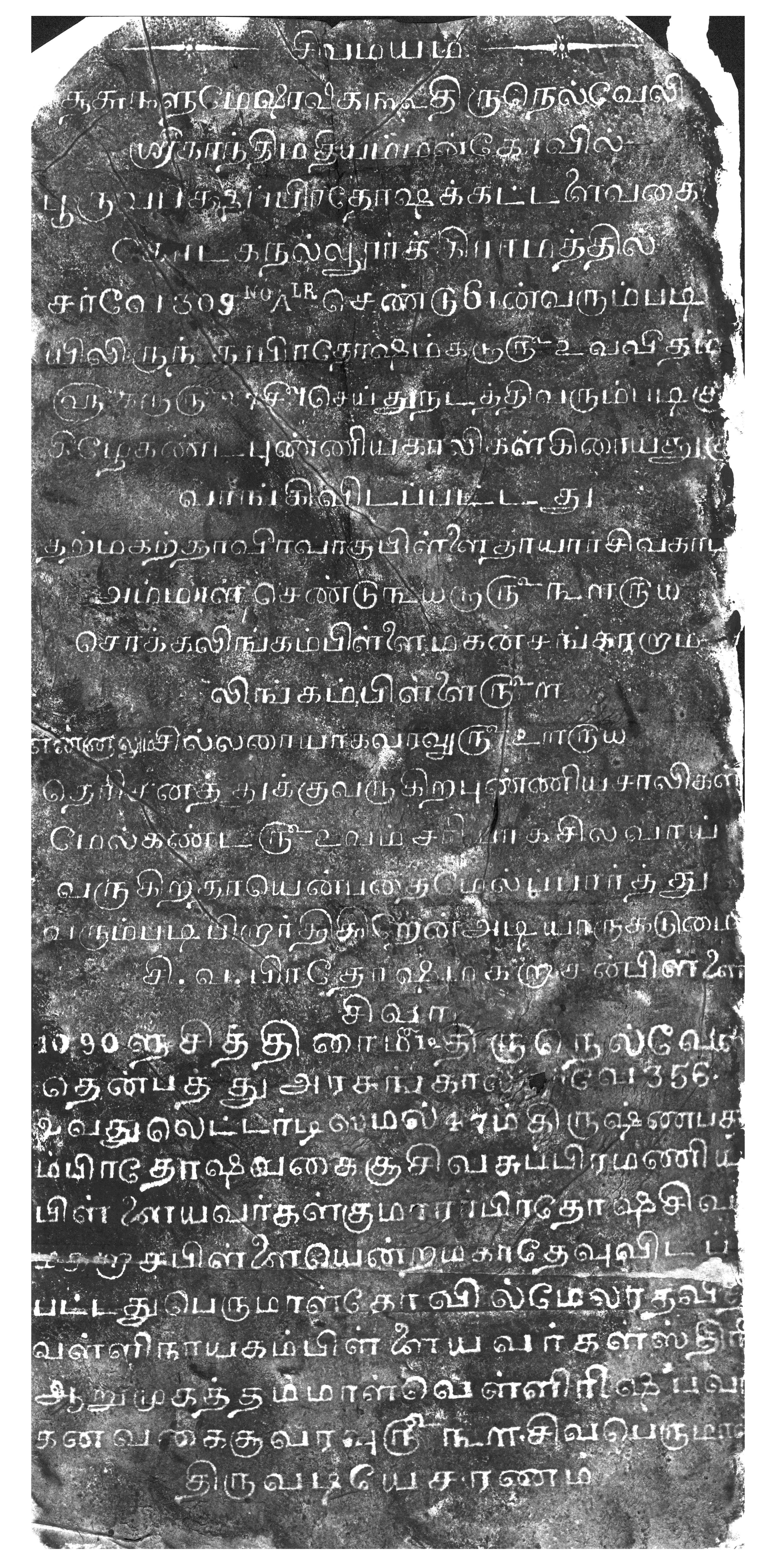 | கல்வெட்டுமின்னுருவாக்கப்பட்டது/ சேகரிக்கப்பட்டதுநிறுவனத்தின்பெயர் | தமிழ்நாடு அரசு தொல்லியல் துறை |