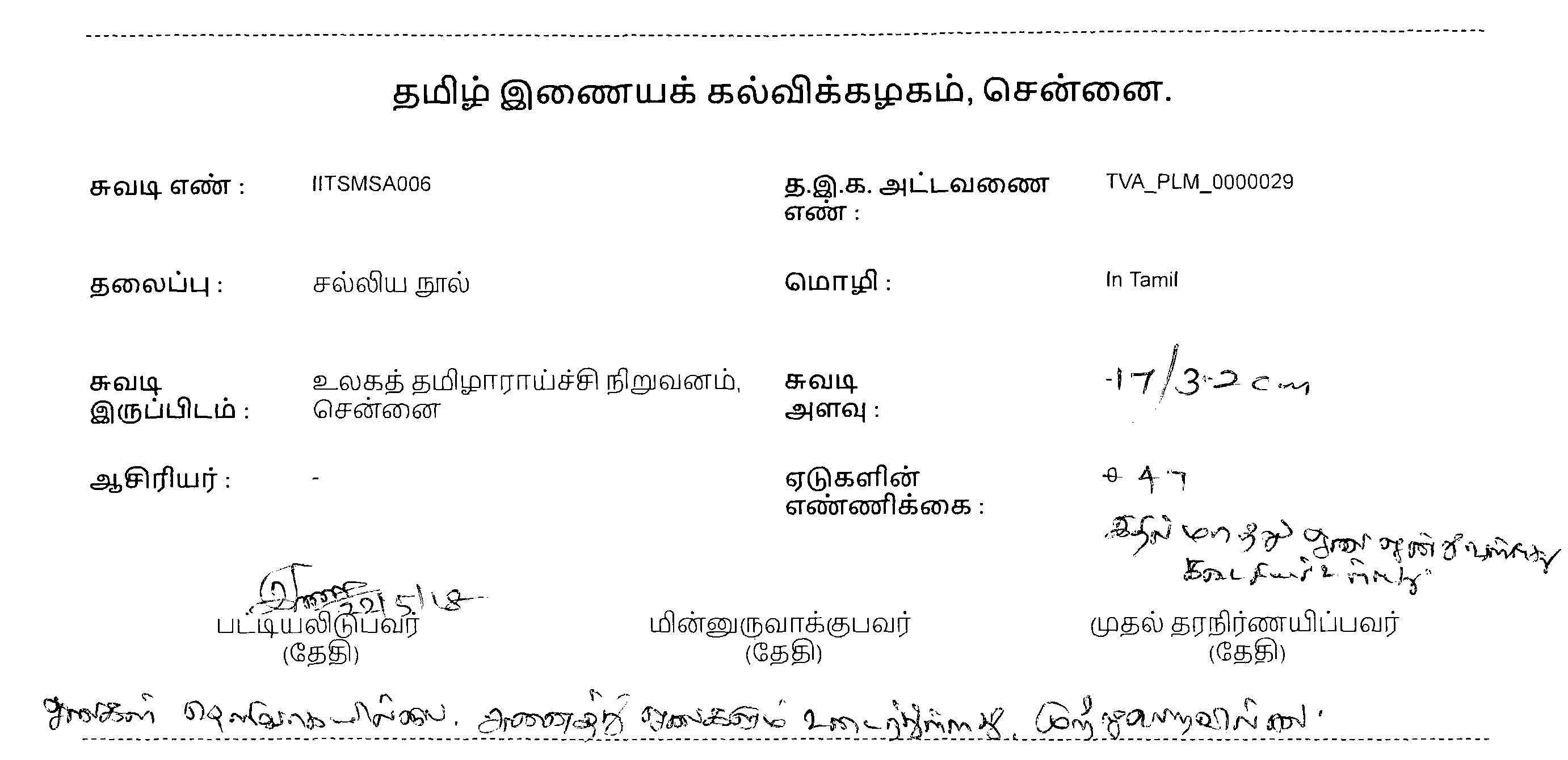 பதிவேற்ற விவரம்