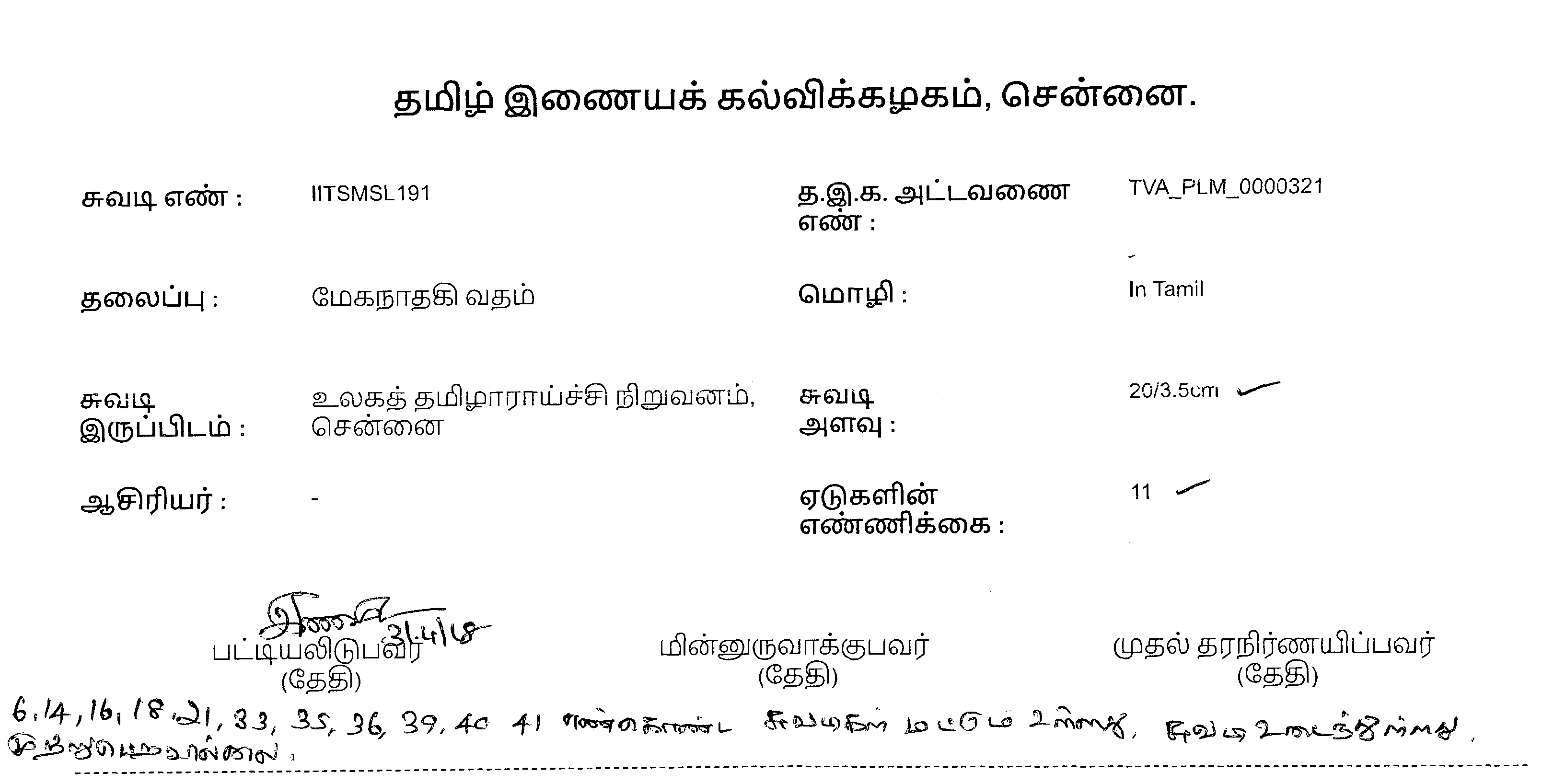பதிவேற்ற விவரம்