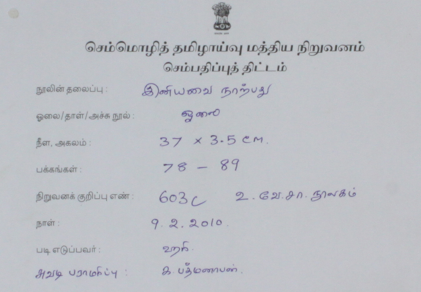 பதிவேற்ற விவரம்