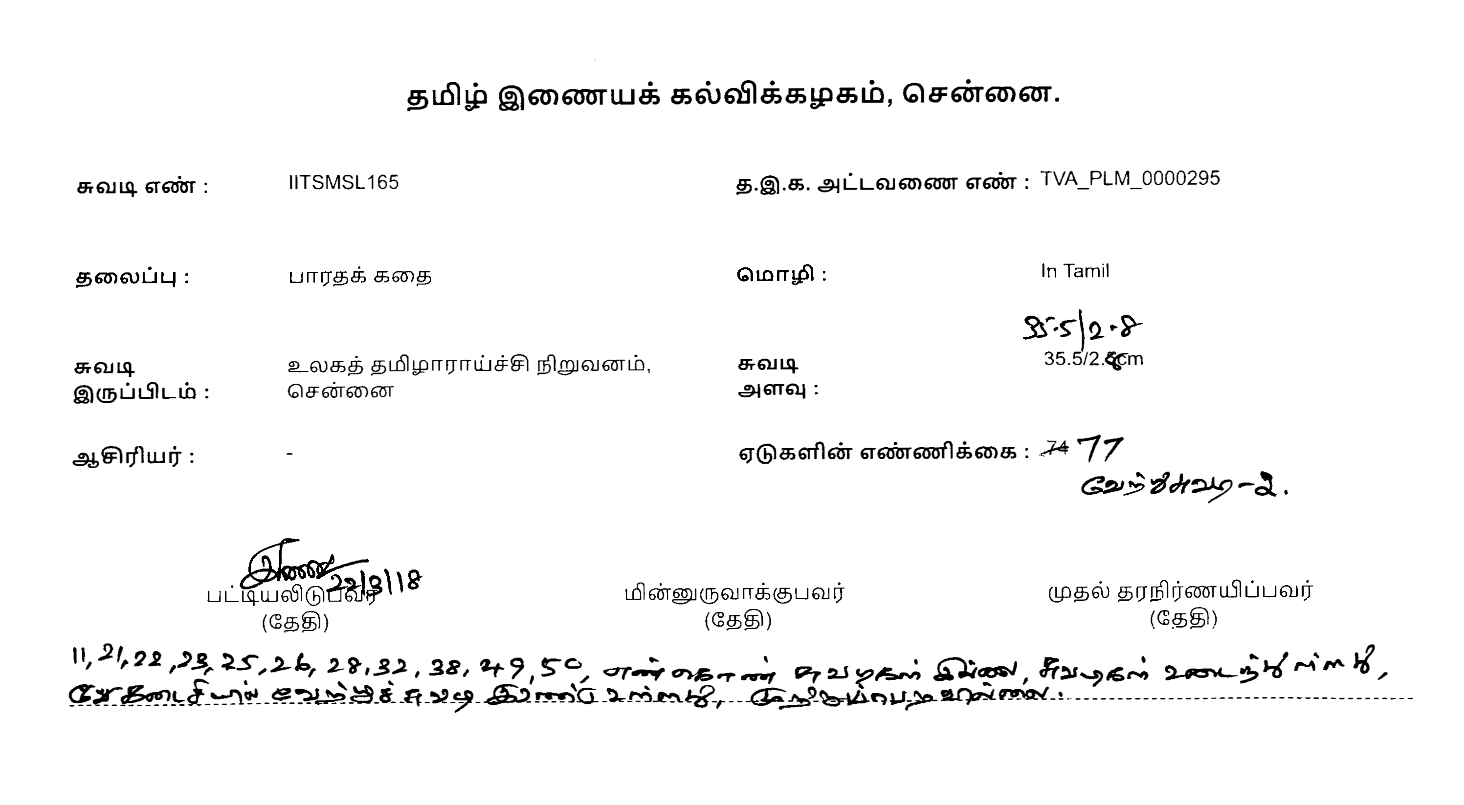 பதிவேற்ற விவரம்