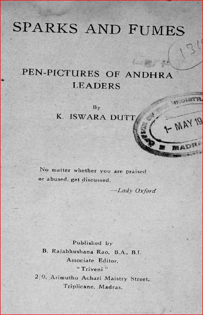 Sparks and Fumes : Pen Pictures of Andhra Leaders